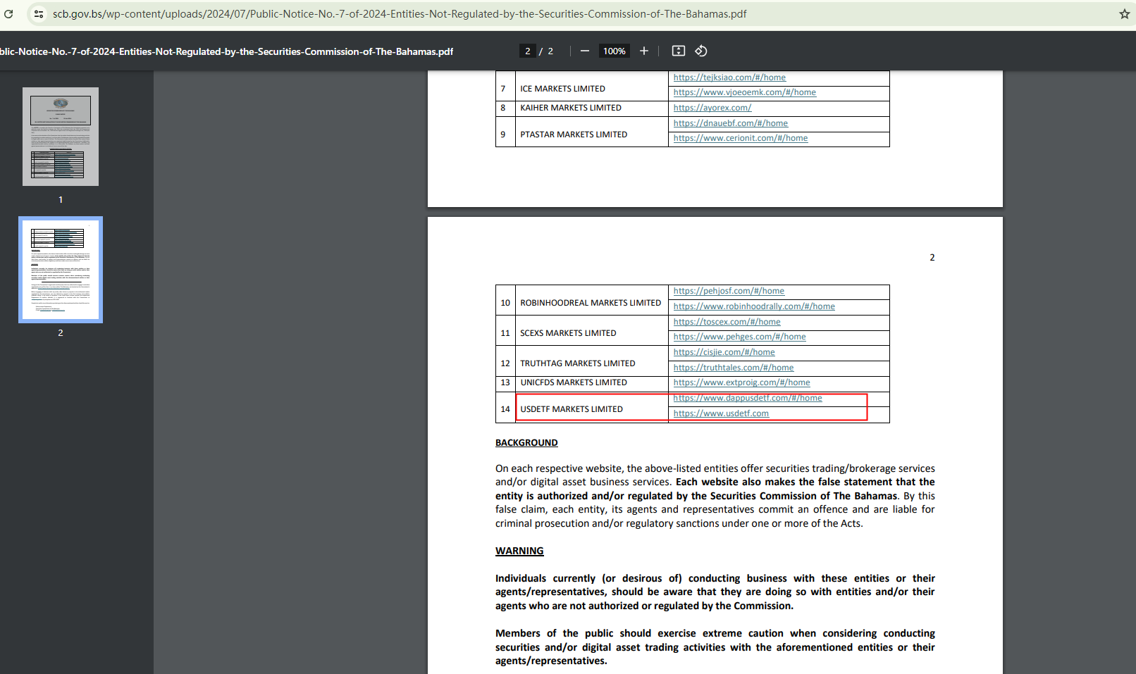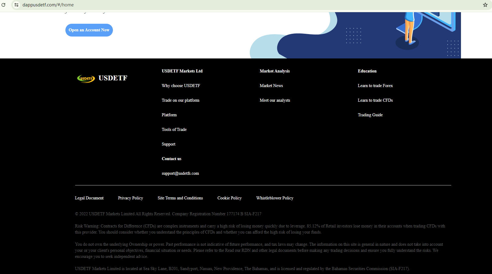 USDETF uses exaggerated languages and unknown awards to establish credibility. However, without any solid evidence of its legitimacy, such as licensing details and accreditation, such claims are questionable. Its assertion of being regulated by the Securities Commission of The Bahamas (SCB) has been debunked by the SCB itself. The authority has added USDETF to its warning list as one of the unauthorized companies.