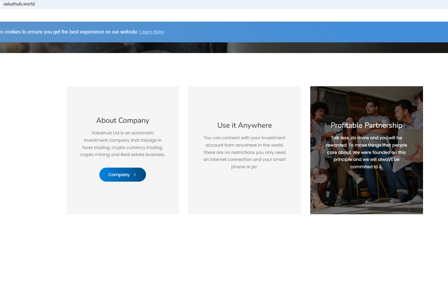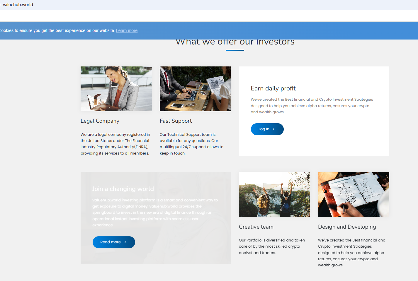 According to its website, it claims to be registered with the Financial Industry Regulatory Authority(FINRA). It is well known that FINRA lacks the authority to regulate foreign exchange. Its office is located in the UK, and upon investigation, we found that the Financial Conduct Authority (FCA) issued a warning regarding ValueHub, suspecting that this company may be offering financial services or products without the necessary authorization.
