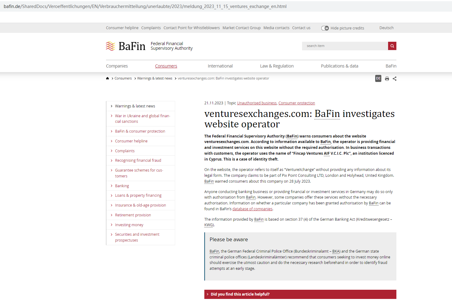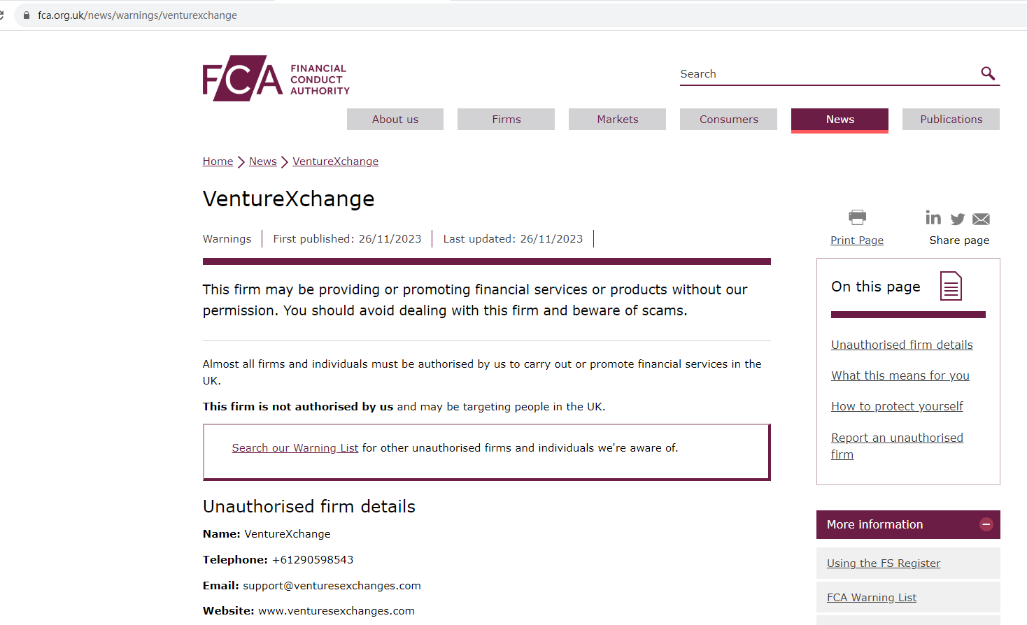 According to its website, it claims VentureXchange is part of PIX POINT CONSULTING LTD. Company number 09999724. Upon investigation, we did find relevant information in the companies house, but this cannot be used as evidence of regulation. In addition, we searched on Financial Conduct Authority (FCA), but did not find any information about VentureXchange.The truth is that VentureXchange is not regulated by any regulators. Letting it hold or control investors' money is unsafe, and the money can not be protected by any laws. Therefore, VentureXchange is a scam.
