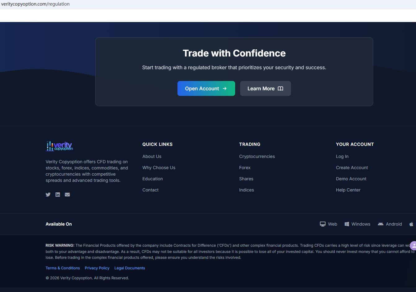 In fact, Verity Copyoption is not regulated by any authority. Therefore, Verity Copyoption is a scam.