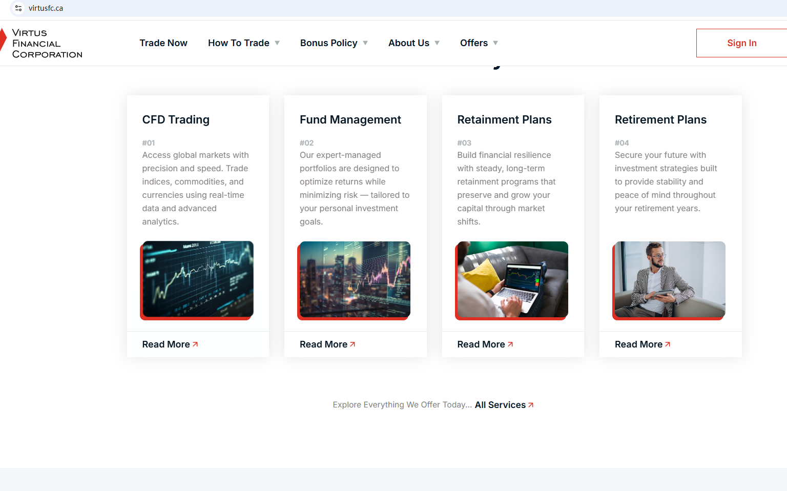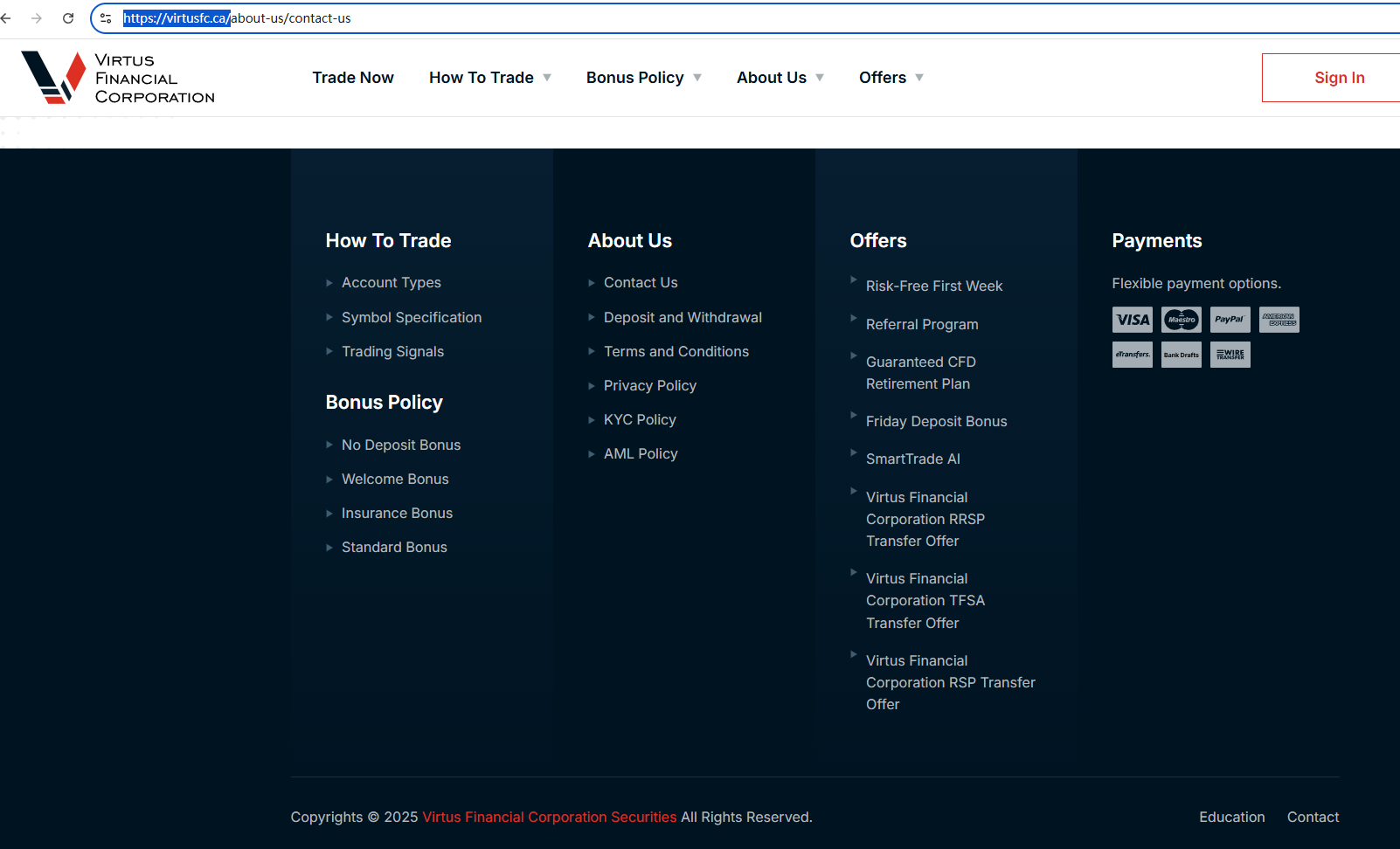 According to its website, it claims to be a reliable company, but it fails to display any valid regulatory information on its website, and doesn't even publish the most basic office address, which is highly untrustworthy. Furthermore, the British Columbia Securities Commission (BCSC) issued a warning against Clone Virtus Financial Corporation, stating that this broker is not registered to trade in, or advise on, securities or derivatives in BC.