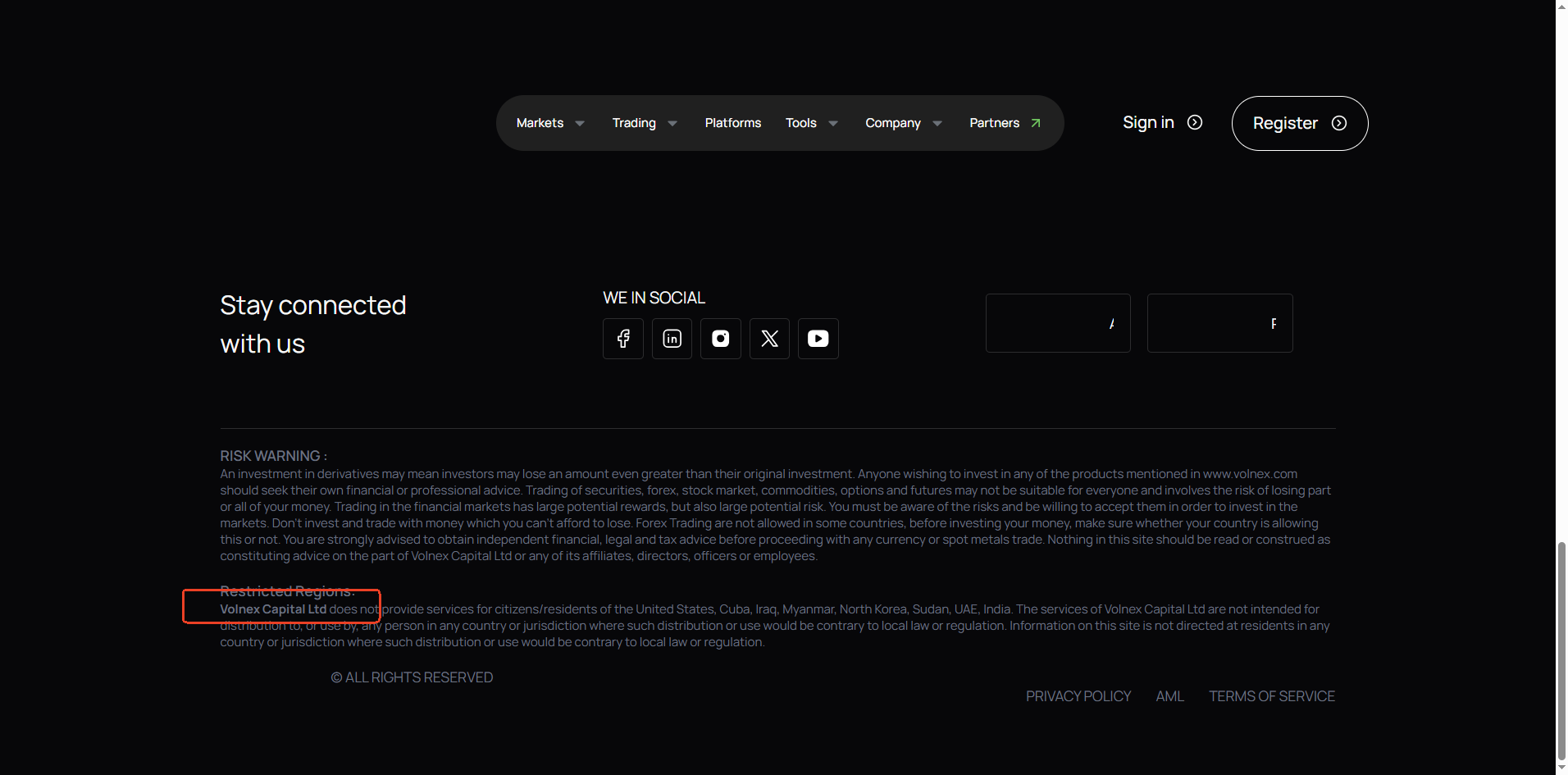 VolNex does not claim to be licensed or regulated by any financial authority. Instead, it states only that it is operated by Volnex Capital Ltd, a company registered in Saint Lucia.