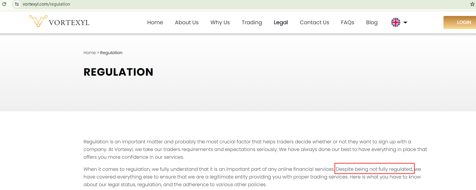 VORTEXYL claims that they are not fully regulated but comply with pertinent regulations. However, what they do contradicts such claims.