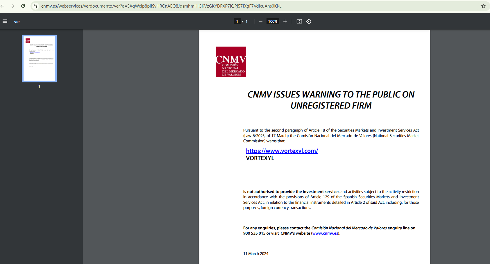What's more, its unlicensed provision of financial services has prompted a warning from the Comisión Nacional del Mercado de Valores (CNMV), further raising concerns about its legitimacy and credibility.