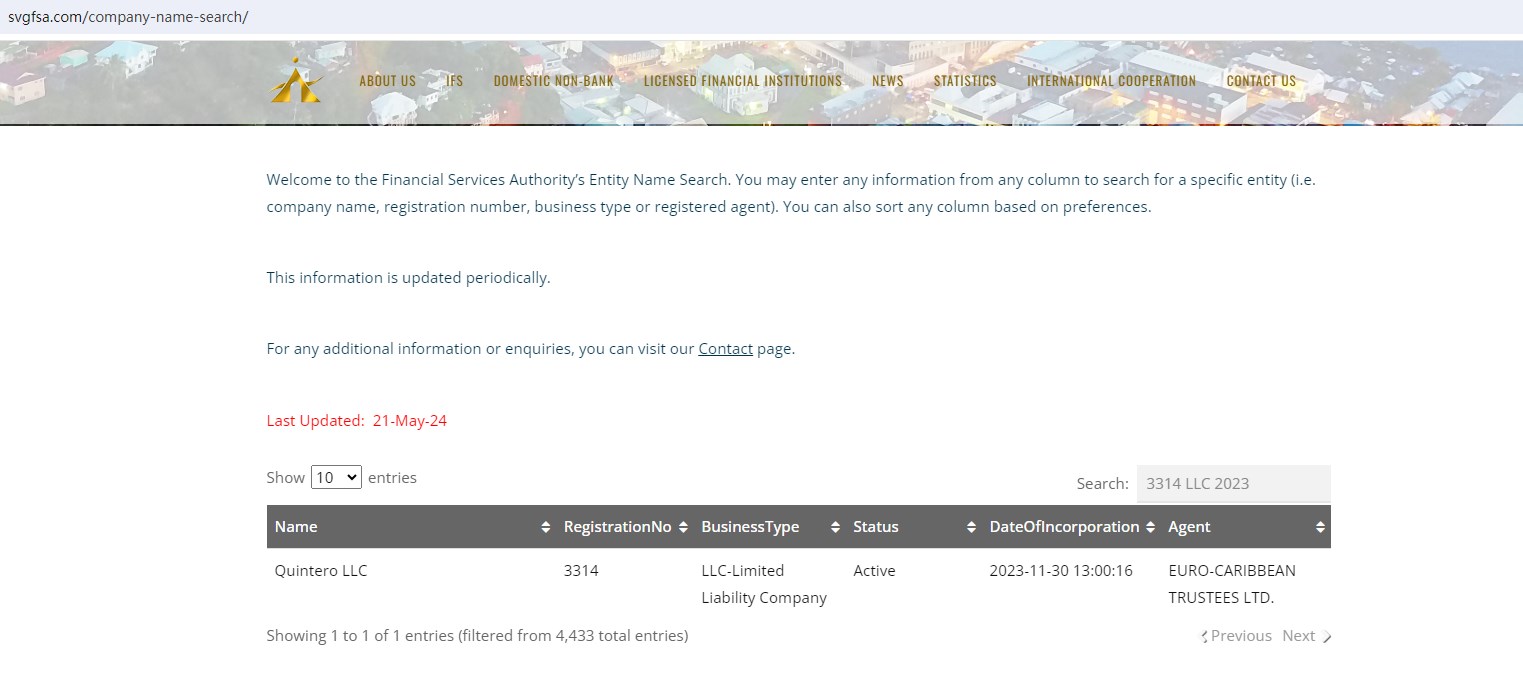 Upon investigation, we found that Quintero LLC has the registration with SVG FSA, an offshore authority that doesn't license forex trading brokerage activities.