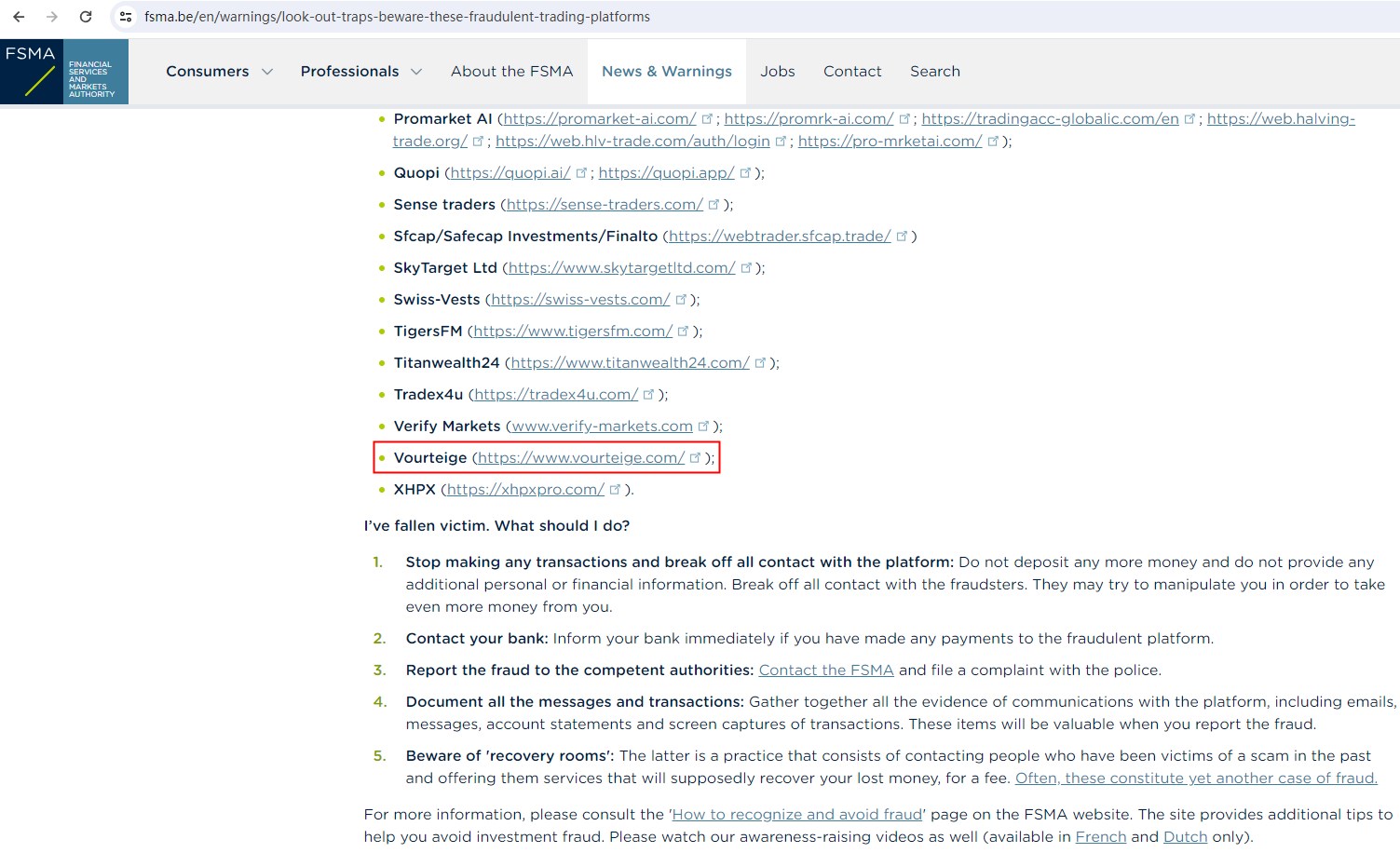 Vourteige (https://www.vourteige.com), believing this company might be providing financial services or products without authorisation in Belgium.