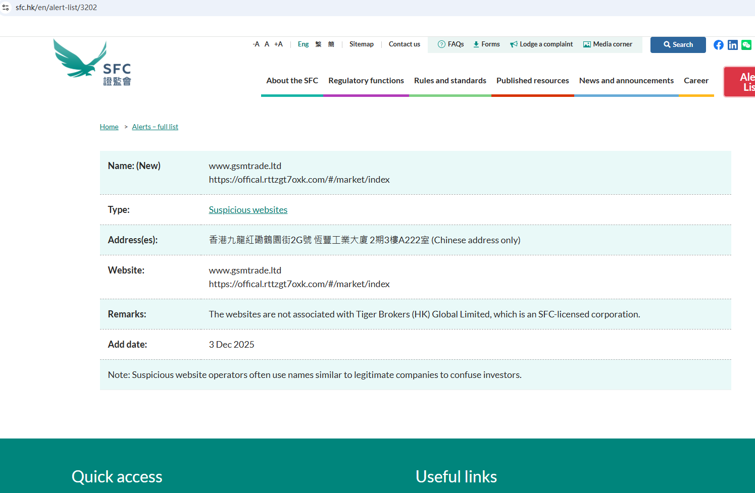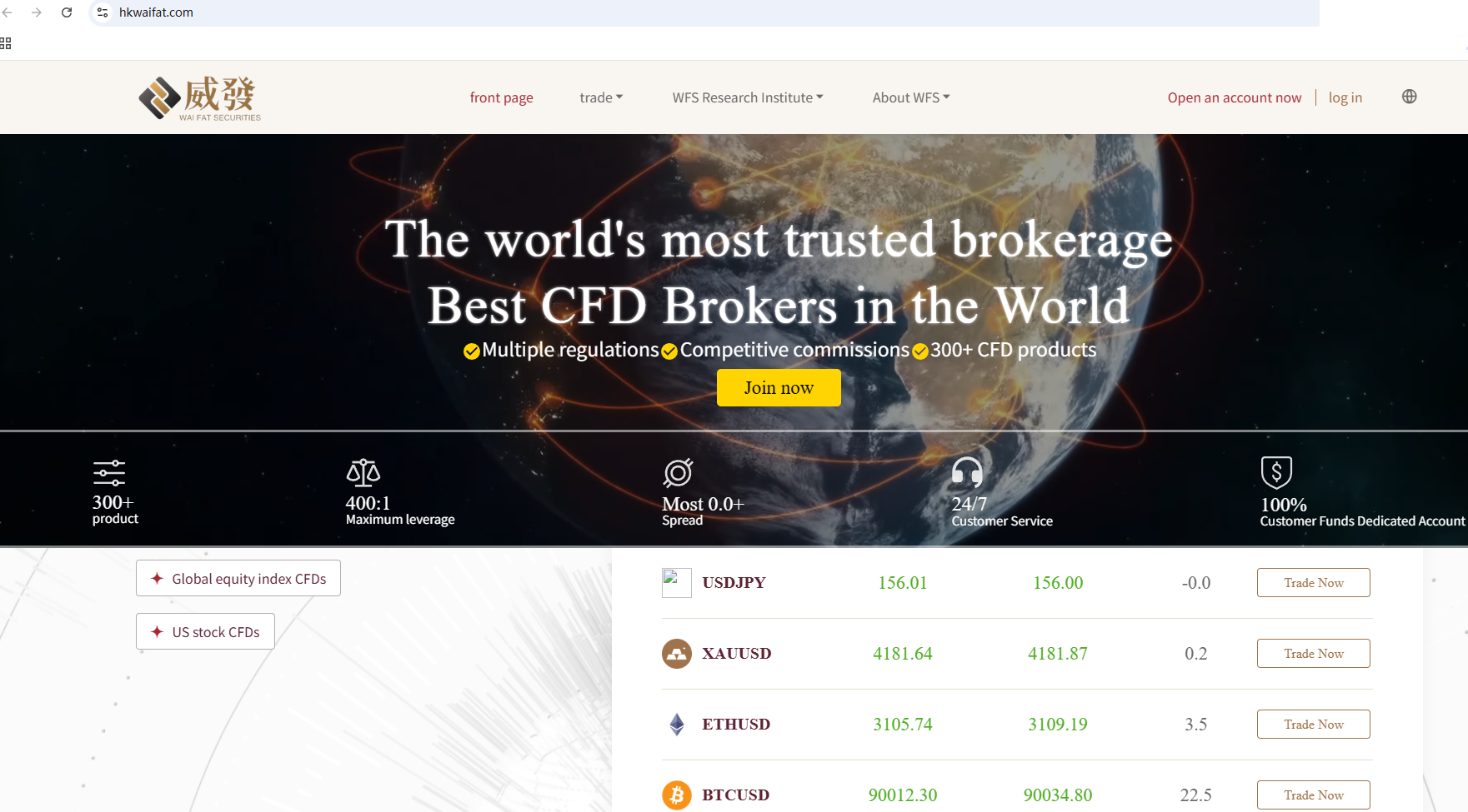It claims to be regulated by the Securities and Futures Commission(SFC). However, no such information was found, and the SFC issued a warning against WAI FAT SECURITIES, believing this company might be providing financial services or products without proper authorization in the HK.