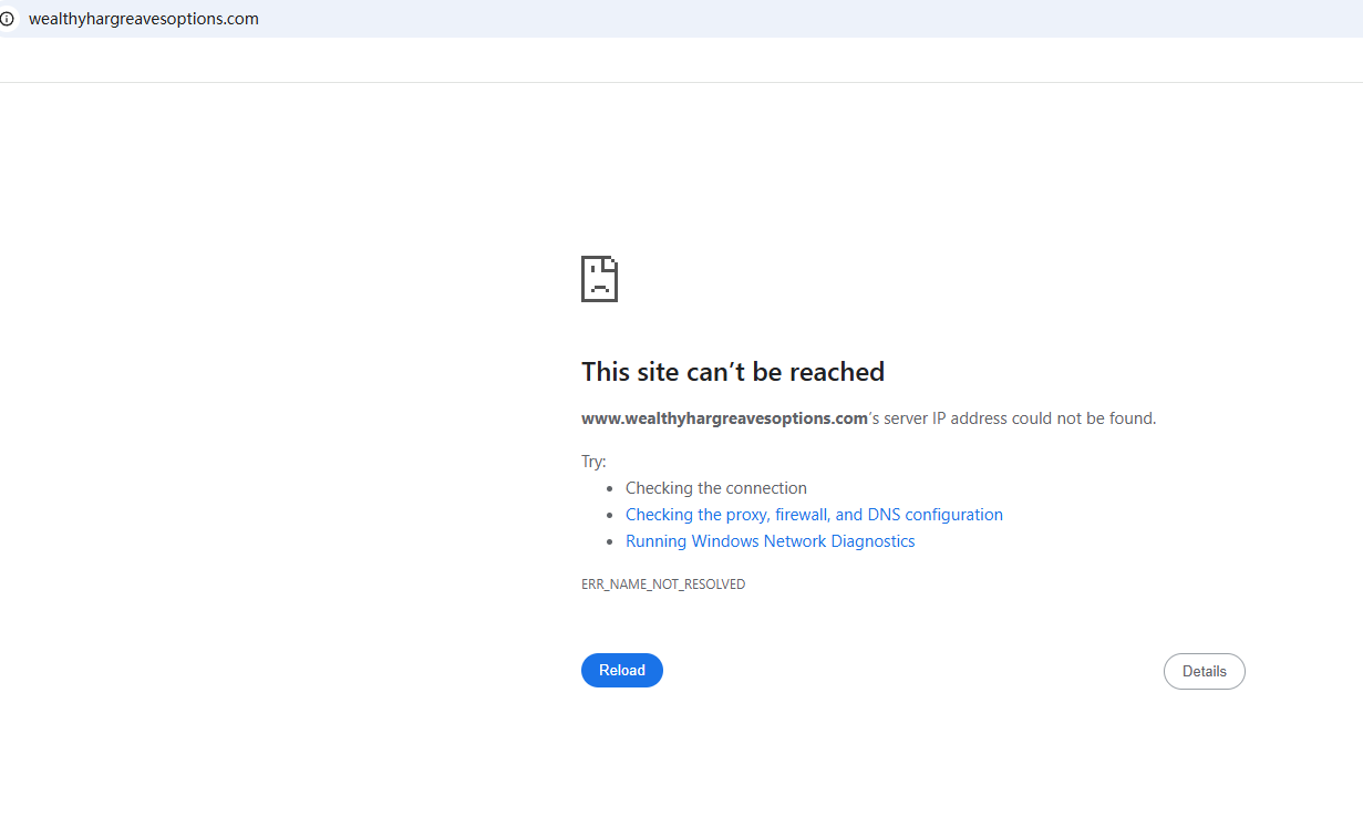 WEALTHY HARGREAVES OPTIONS fails to disclose information about its regulatory status, a significant scam indicator, as legitimate brokers always prominently display such information.WEALTHY HARGREAVES OPTIONS provides an address in the UK, where the financial watchdog is the Financial Conduct Authority (FCA). However, we searched for this company in the FCA registry and discovered that it has been added to the warning list for illegally providing financial products/services in the UK.In essence, WEALTHY HARGREAVES OPTIONS is not regulated by any governing body. Entrusting this broker with investors' funds is highly risky, as there are no legal protections in place to safeguard the funds. It is unequivocally a scam.