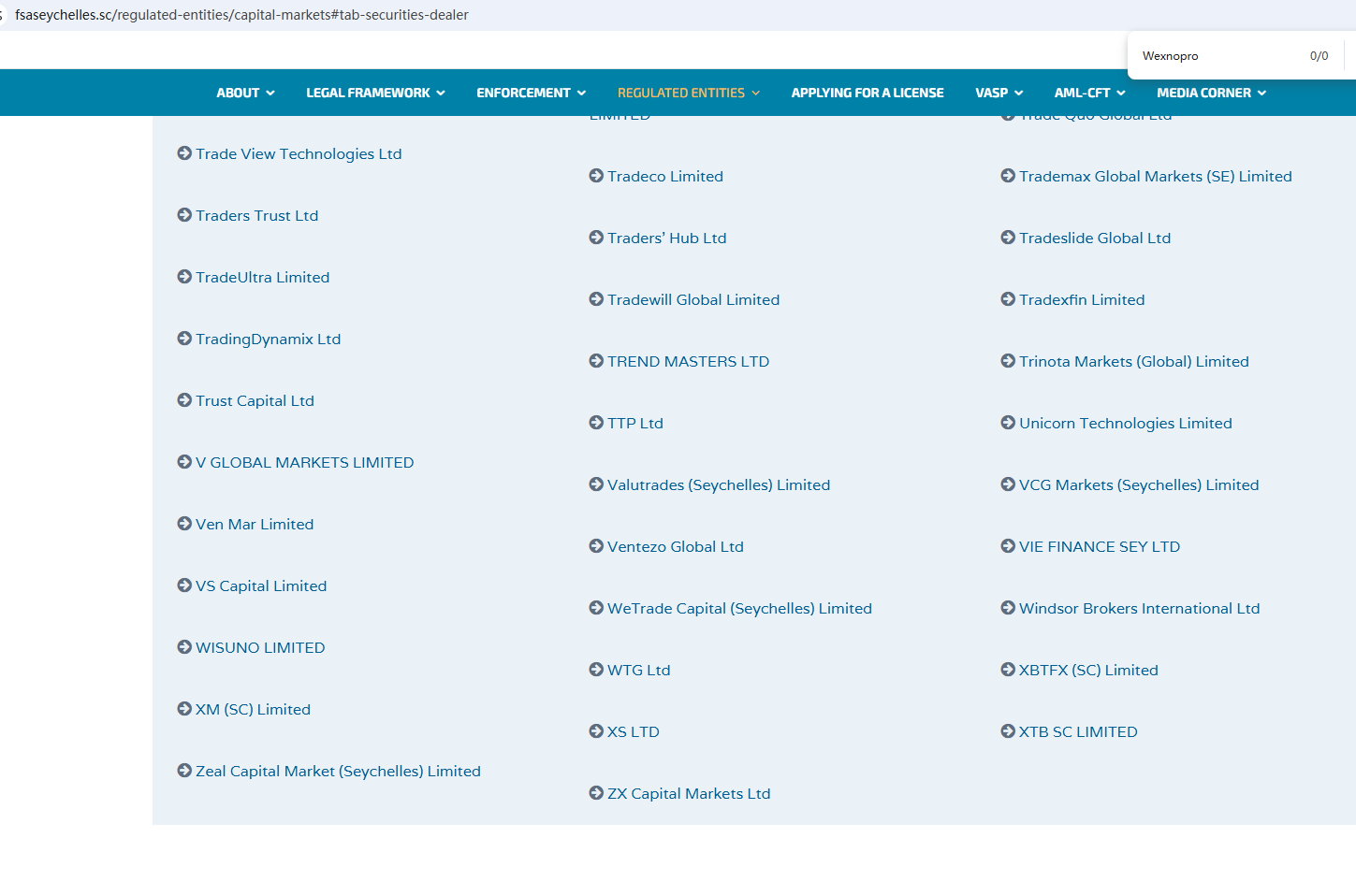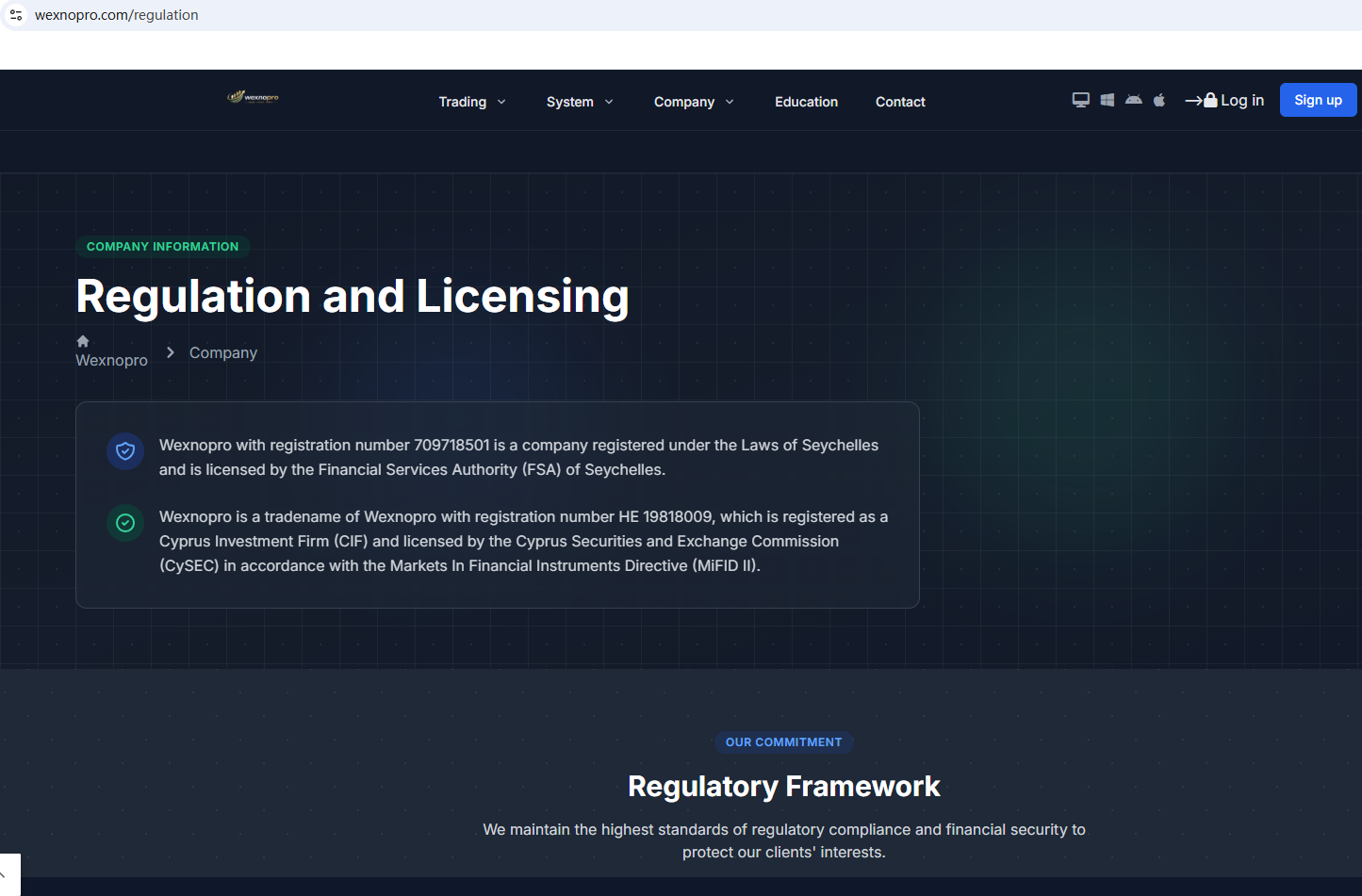According to its website, it claims to be regulated by the Seychelles Financial Services Authority (Seychelles FSA) and the Cyprus Securities and Exchange Commission (CySEC). Upon investigation, no matching information was found in the Seychelles FSA and CySEC. In addition, the Financial Conduct Authority (FCA) issued a warning regarding Wexnopro, suspecting that this company may be offering financial services or products without the necessary authorization.