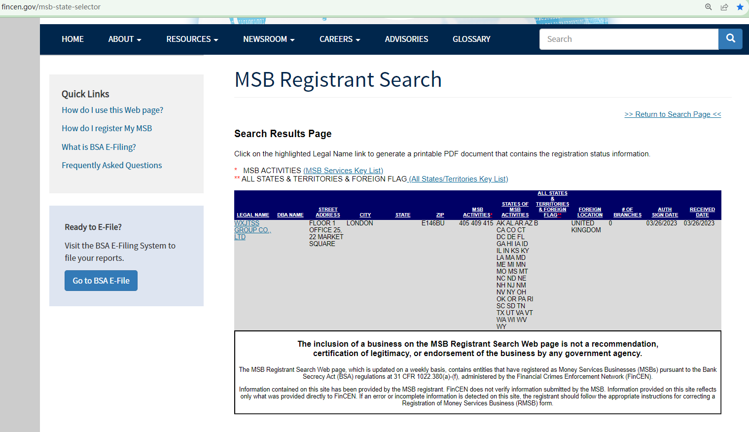 While the MSB registration exists, it is crucial to note that the inclusion of a business on the MSB Registration website is not a recommendation, certification of legitimacy, or endorsement of that business by any government agency. Information contained on this site has been provided by the MSB registrant and FinCEN does not verify information submitted by the MSB. Furthermore, the FinCEN's mission is to safeguard the financial system from illicit use, and combat money laundering and its related crimes including terrorism. Therefore, this agency has no authority in the forex market. The MSB registration cannot support WXJTSS' legitimacy in forex trading.