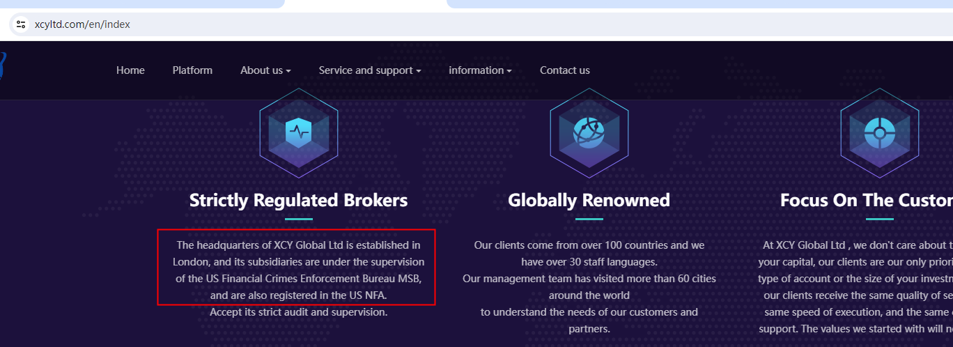XCY Global LTD is a prime example of a group scammers who exploit basic forex broker website templates to excute their fraudulent schemes.