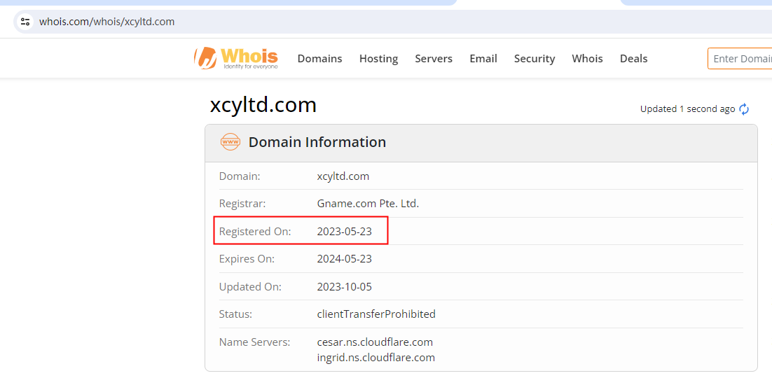 These entities typically have short lifespans, vanishing as soon as their deceptive activities are detected, only to resurface under a different brand and web address. These sites are often hastily constructed. For instance, our examination of XCY Global LTD's domain name, xcyltd.com, suggests that it was registered in May 2023.