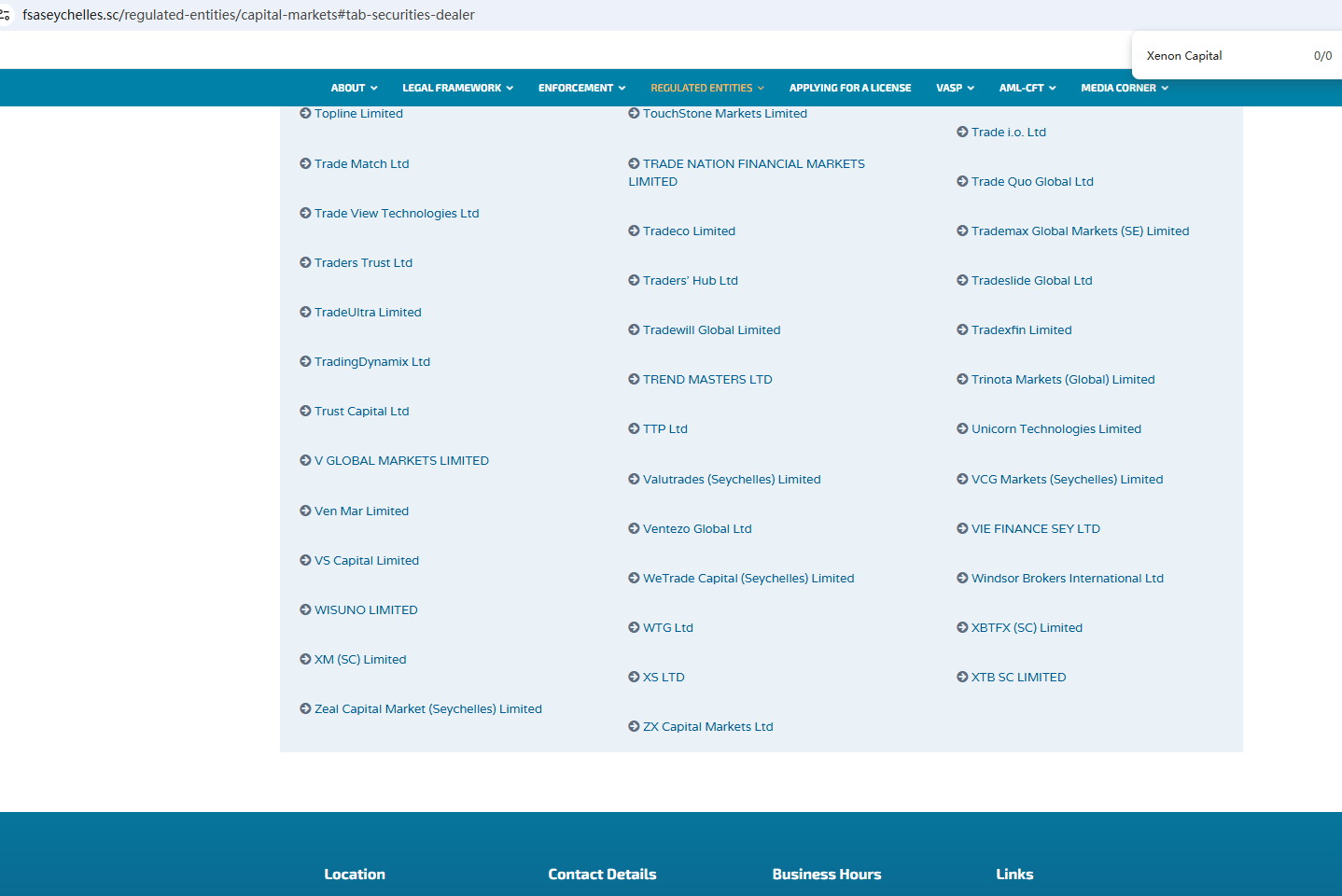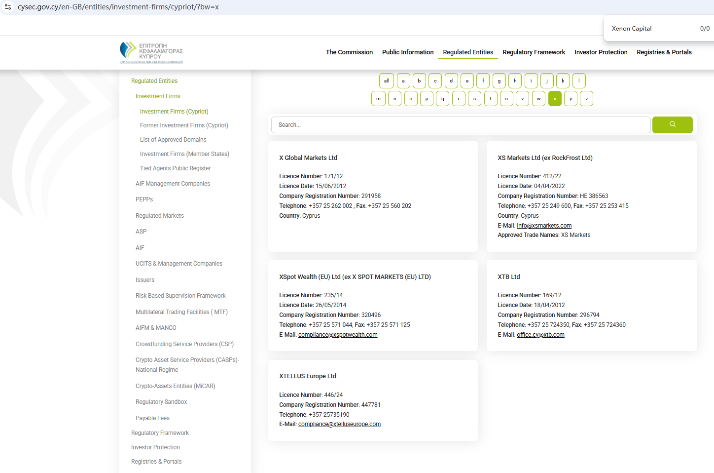 According to its website, it claims to be registered with both the Cyprus Securities and Exchange Commission (CySEC) and the Seychelles Financial Services Authority (Seychelles FSA). However, a search revealed no matching information with either CySEC or FSA. Furthermore, the Financial Conduct Authority (FCA) issued a warning regarding Xenon Capitals, suspecting that this company may be offering financial services or products without the necessary authorization.