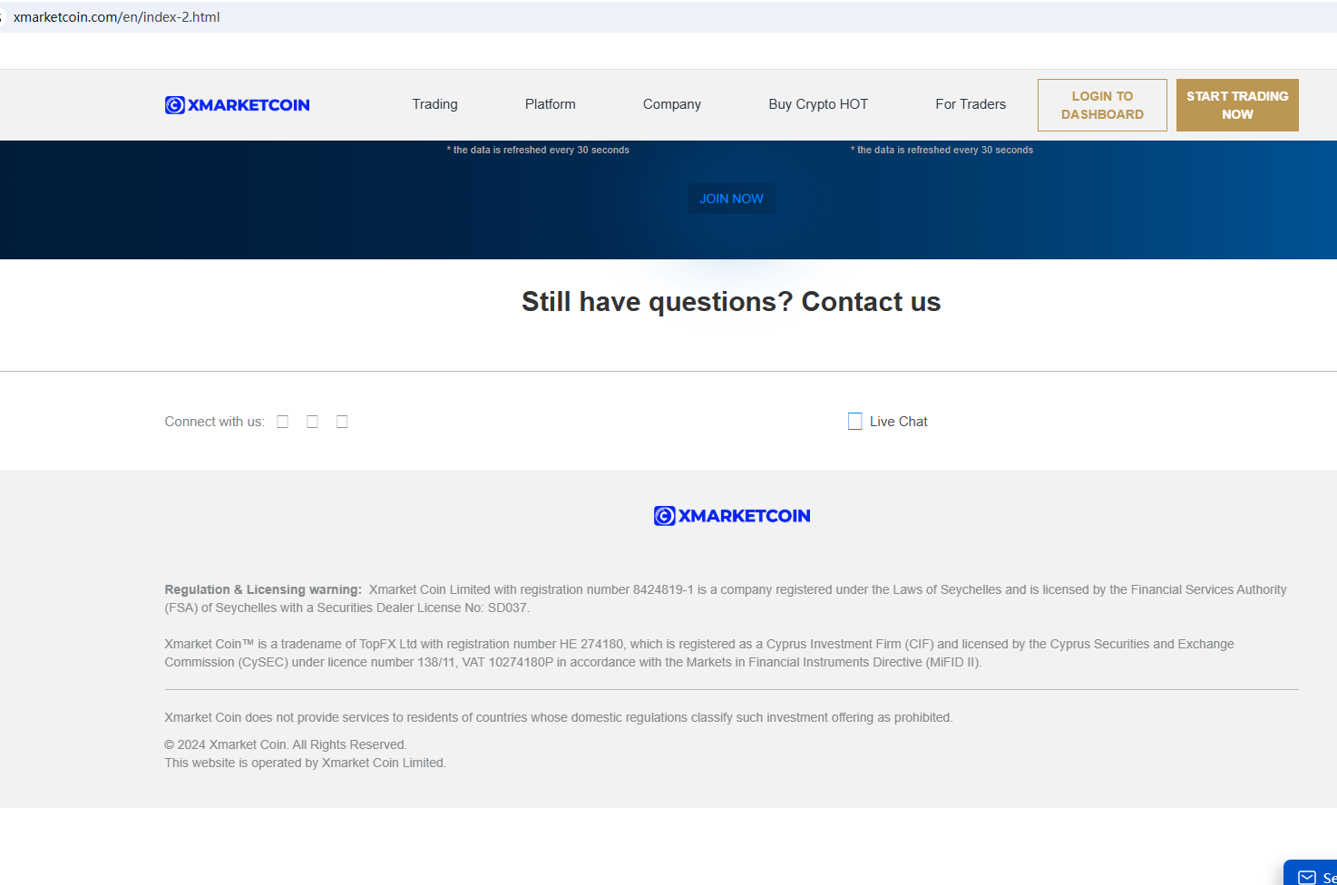 In essence, Xmarket Coin is not regulated by any governing body. Entrusting it with investors' funds is highly risky, as there are no legal protections in place to safeguard the funds. Xmarket Coin appears to be a scam.
