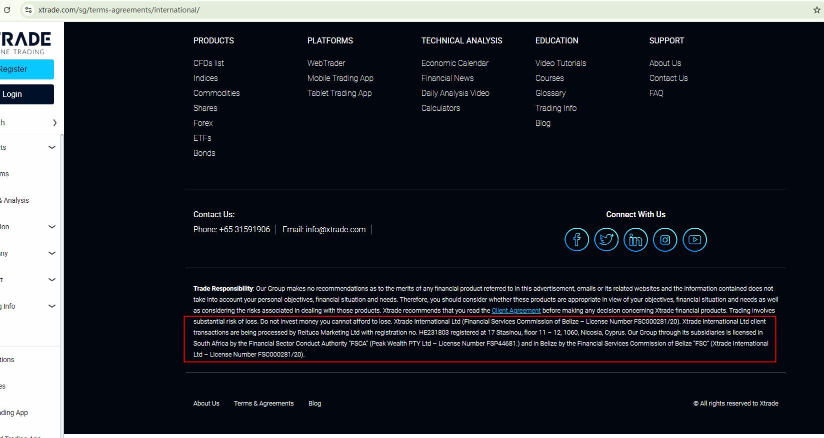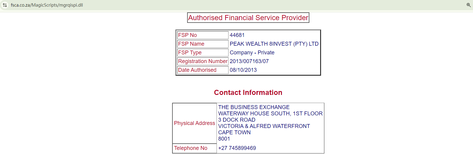 In addition, the company purports to be licensed in South Africa by the Financial Sector Conduct Authority (FSCA), and the related firm name is Peak Wealth PTY Ltd supposedly under License Number FSP44681. But on the FSCA register, the company under FSP44681 is PEAK WEALTH 8INVEST (PTY) LTD and the associated information with the licensee is inconsistent with what Xtrade asserts. Therefore, there is no evidence to suggest that Xtrade is regulated by the FSCA.