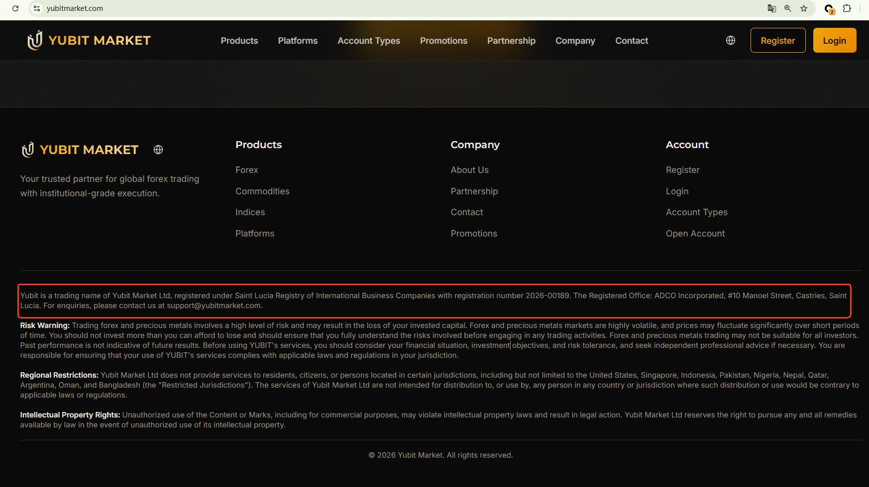 Yubit Market has not provided any information regarding regulatory oversight or licensing, claiming only to be a company registered in Saint Lucia. While our search confirms that Yubit Market Ltd. is listed with the Saint Lucia International Financial Centre (IFC), this entry indicates an International Business Company (IBC) registration only. It is crucial to understand that this status does not constitute a valid brokerage license, and currently, no institution in Saint Lucia explicitly regulates forex trading activities.