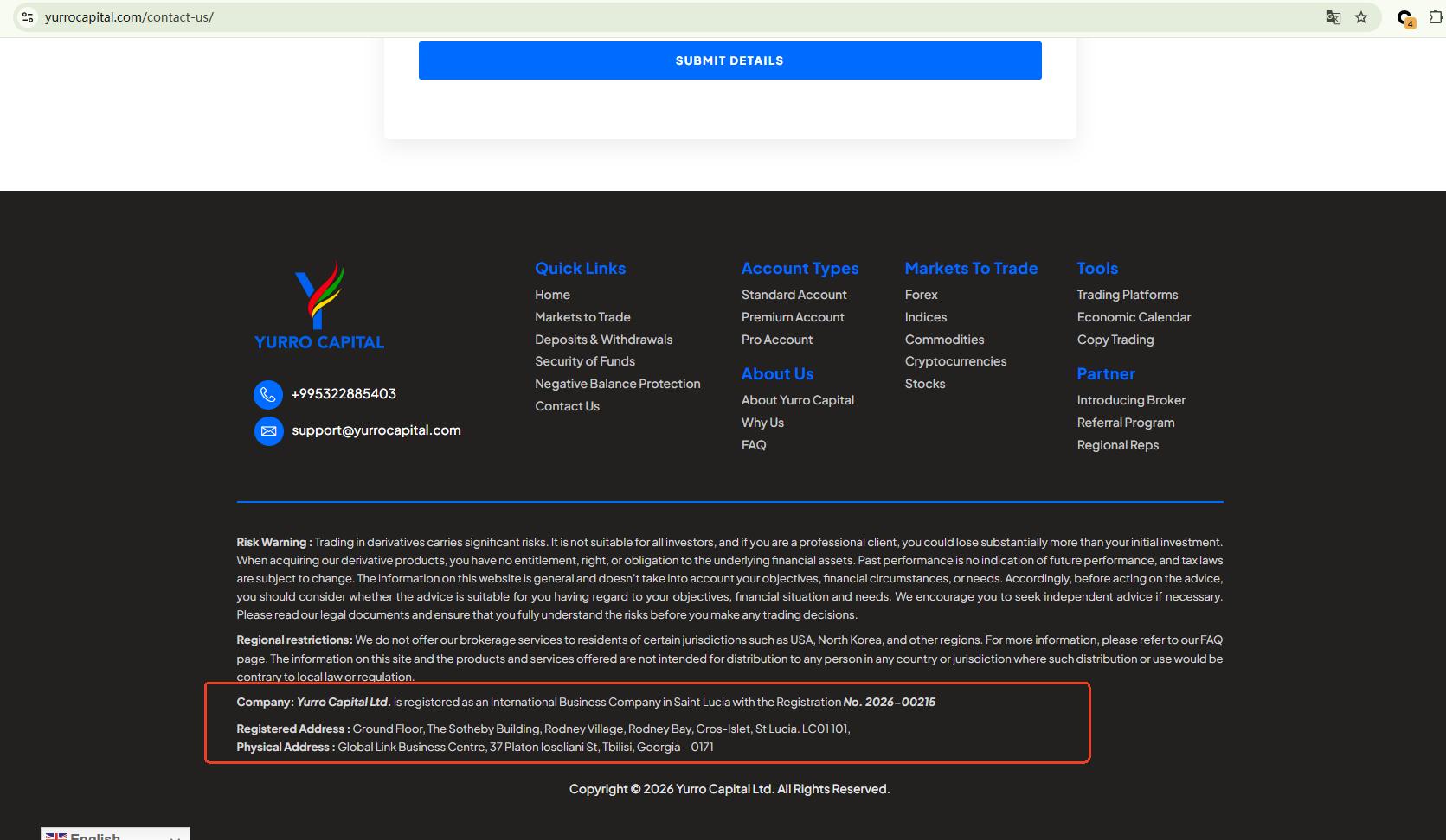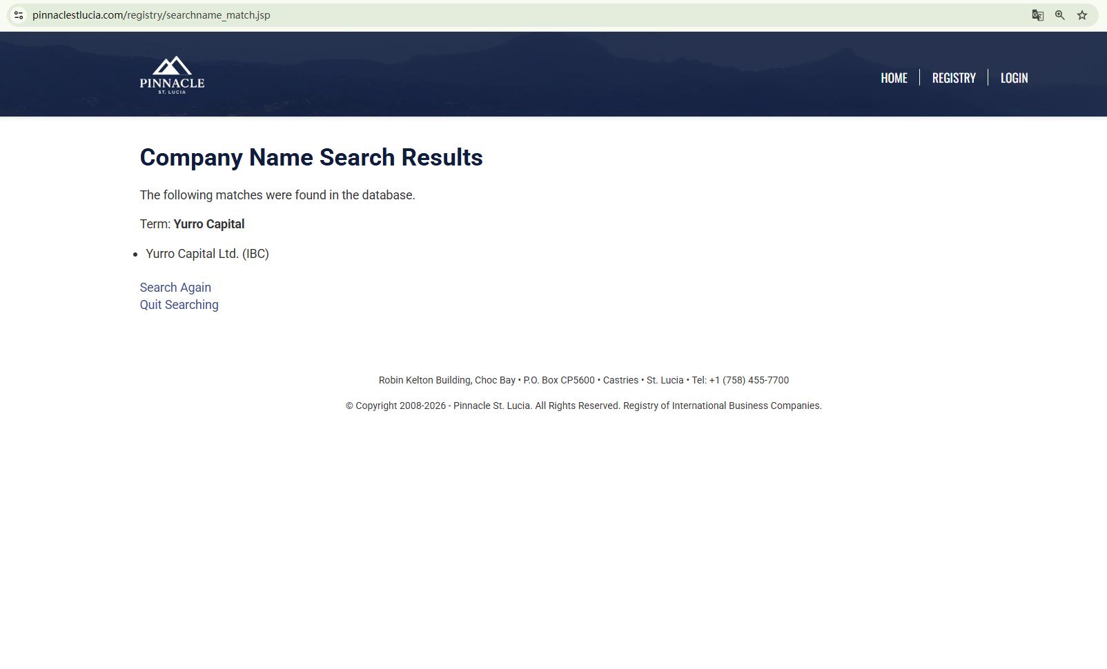 Yurro Capital does not claim to be licensed by any regulator; it only claims to be registered in Saint Lucia. While we can confirm that there is a company with the same name in the Saint Lucia International Financial Centre (IFC) registry, this registration only grants it International Business Company (IBC) status. This does not constitute a valid financial licence. The IFC neither regulates nor licences forex trading activities.