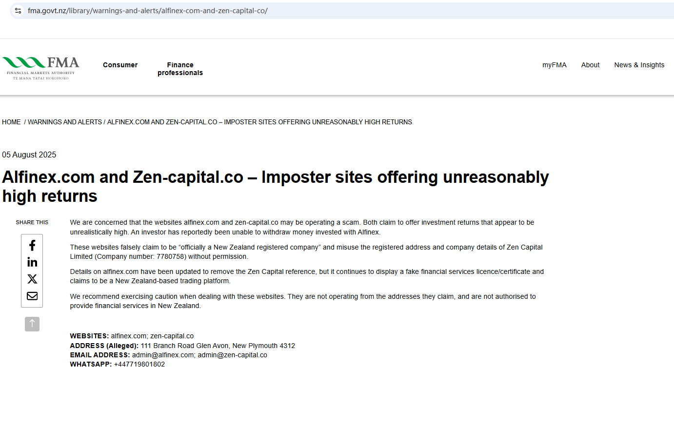 On Aug 5, 2025, the New Zealand Financial Markets Authority (NZ FMA) added Zen Capital its warning list, stating that this is a fake investment platform. https://www.fma.govt.nz/library/warnings-and-alerts/alfinex-com-and-zen-capital-co/