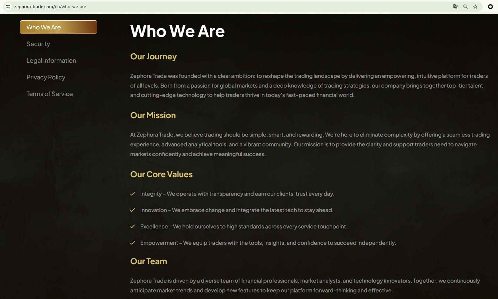 This absence of basic corporate and regulatory information strongly suggests that Zephora Trade operates without authorization. Therefore, Zephora Trade appears to be a scam.