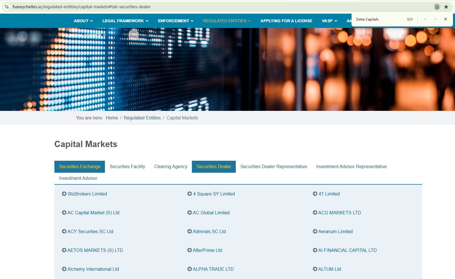 Additionally, we searched the official register of licensed entities maintained by the Seychelles Financial Services Authority (FSA), and found no record of Zetta Capitals being authorized to operate as a financial services provider in Seychelles.