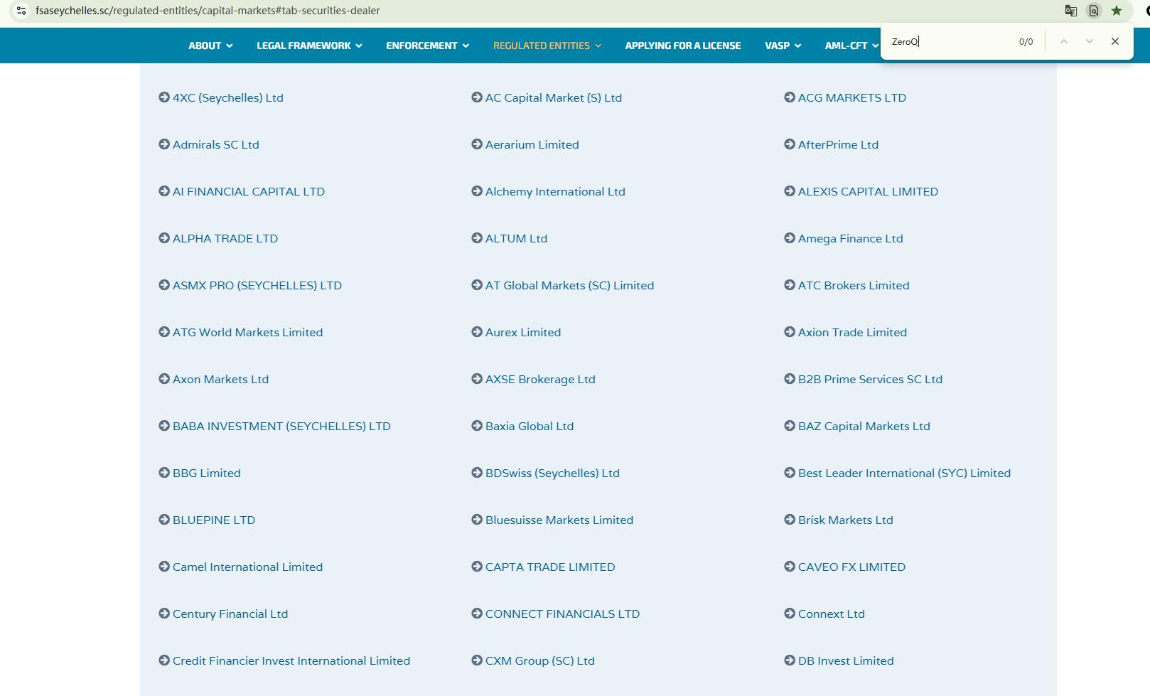 We searched the official register of the the Seychelles Financial Services Authority (FSA) using all available details, but found no record of ZeroQ International INC or any associated company.