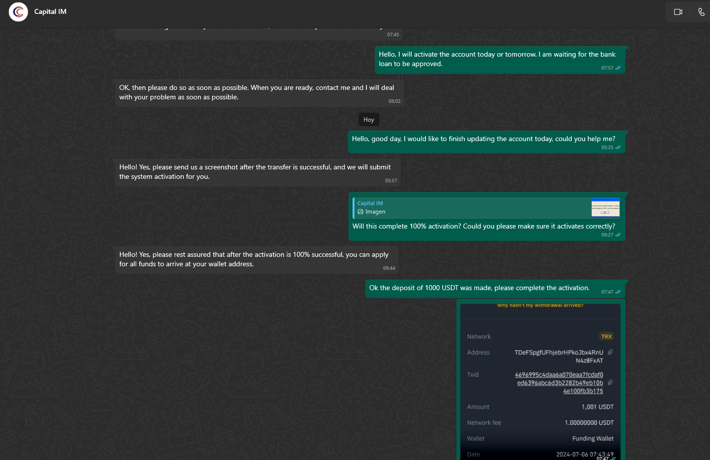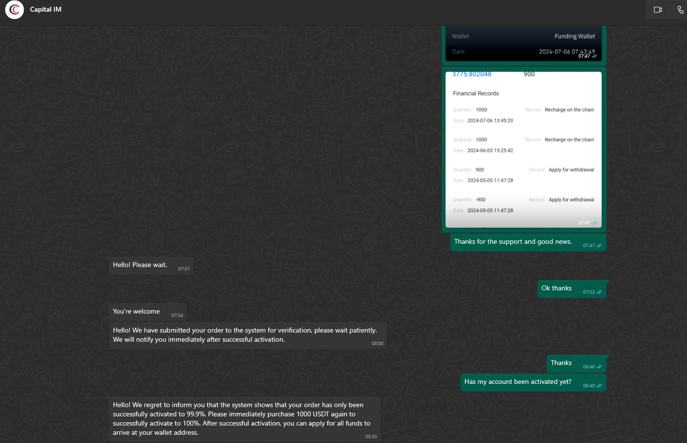 I carried out several operations in Capital IM Limited on the m.capitalimlimited.cc page, when I contacted the support area they asked me several times to pay taxes. I made the tax payment twice but now they are asking me for a payment of $1000 to be able to withdraw and if I don't make the payment they will freeze my account.