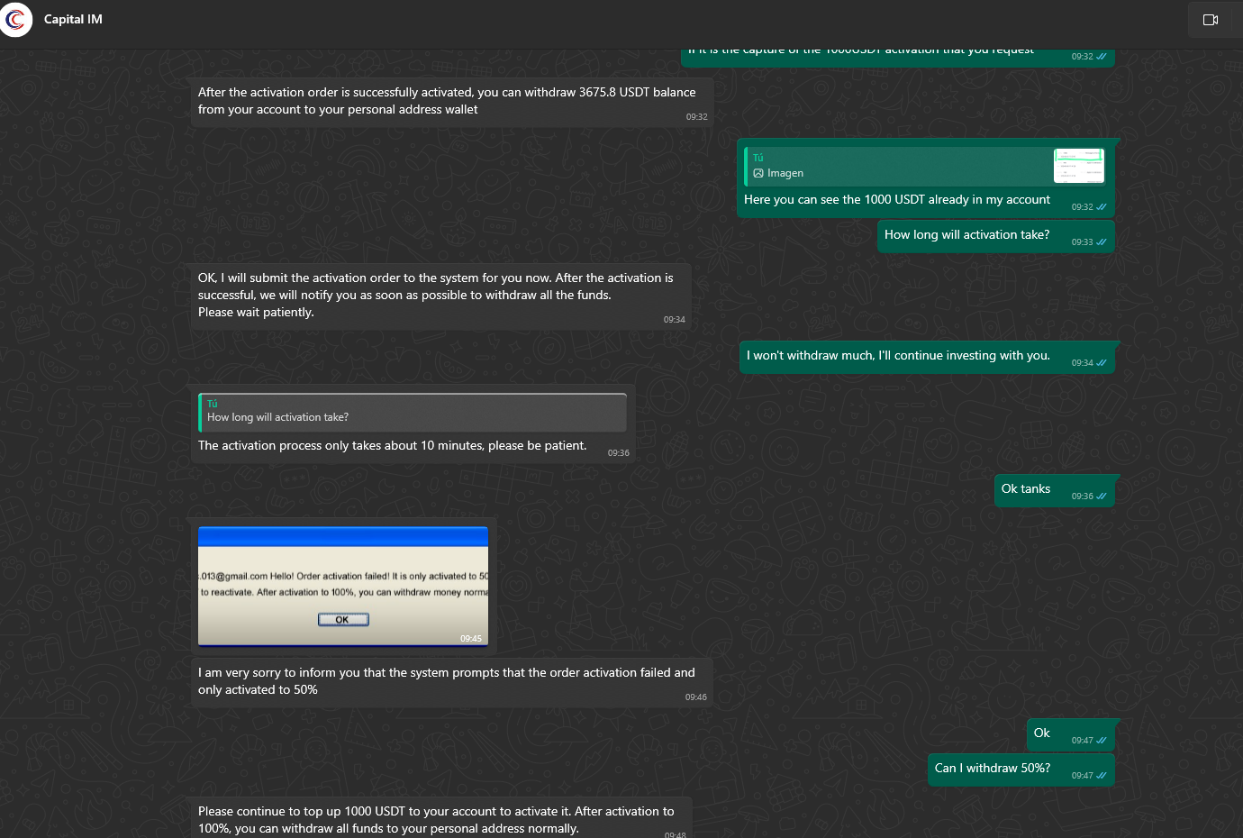 They asked me for 1000 USD to activate the account, after making the payment they asked me for an additional 1000 USD. Indicating that it was only activated at 50%. I made the payment of 1000 USD, but now they tell me that it only reached 99.9%. I would like to recover the 3795 USD of invested capital.