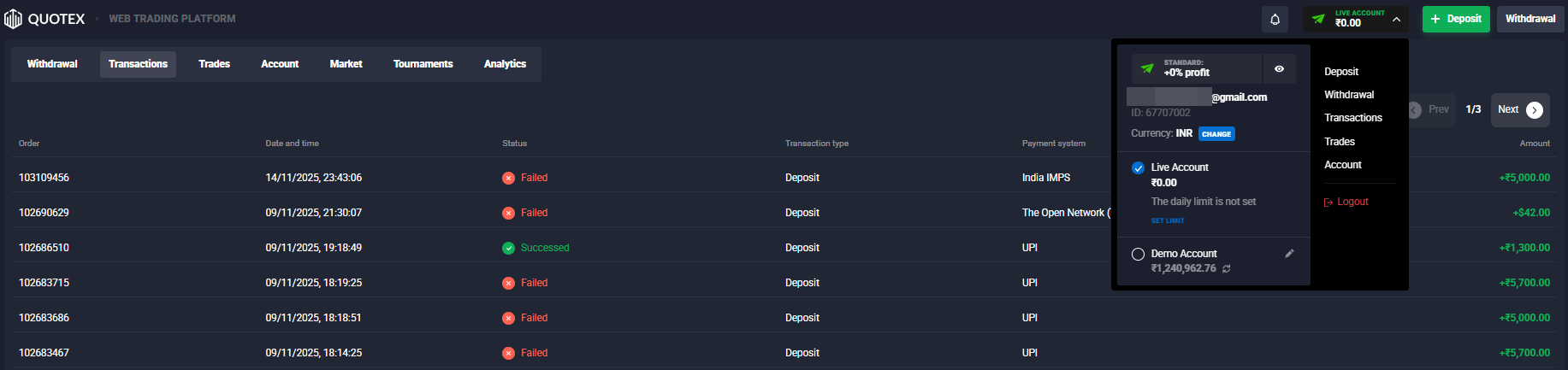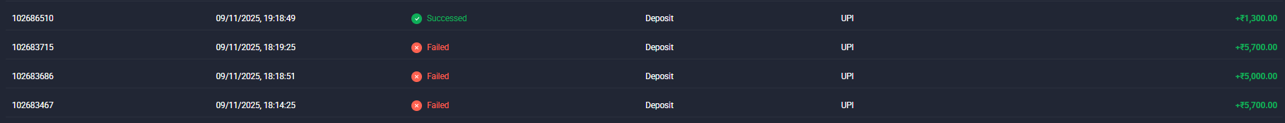 *The status of the deposit on the Platform will be indicated as "Failed" until the funds are actually credited to the account.