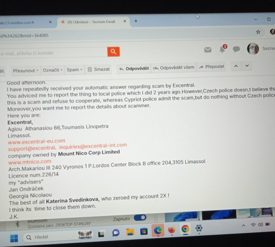 After 2 years Cypriot police and CySec admitted the scam.Cypriot police wants an official request from my local,Czech police which refuse to cooperate althoug all internet knows that Excentral is a scam company. when I asked them for rest both excentral and ombudsman made excuse that both sides agreed with ombudsman,s decision.however,ombudsman sent me a blank form to agree with his decision which he made 4 months leter! It not too fair to me.