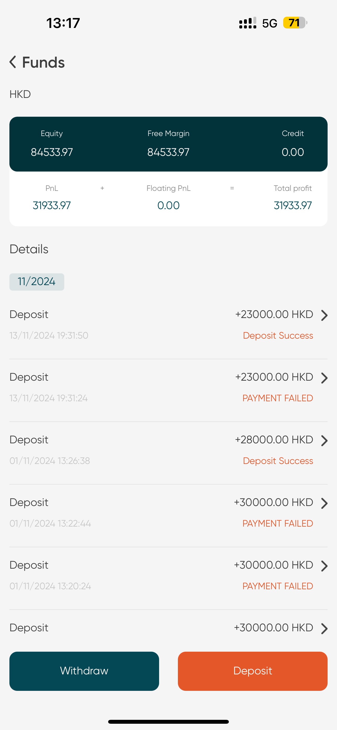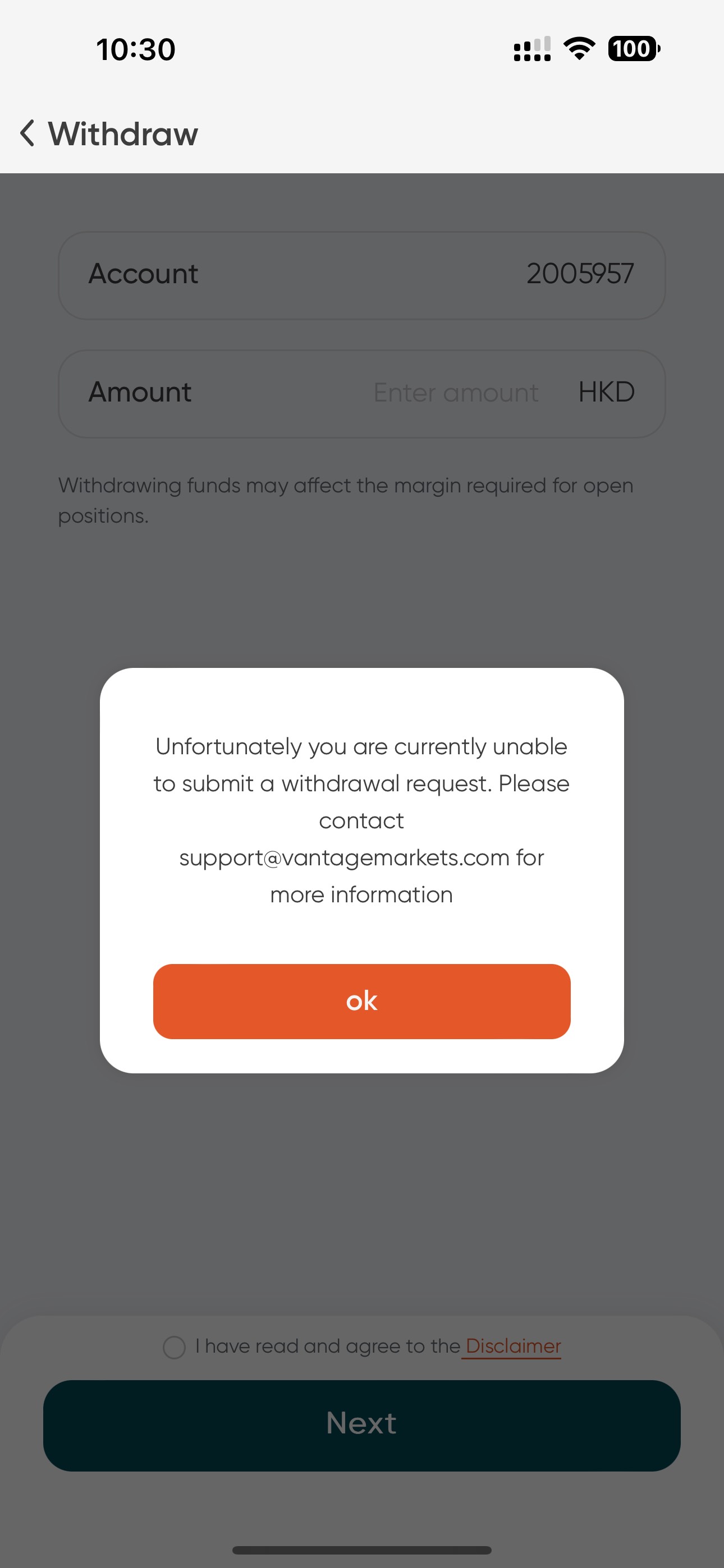 I am from Hong Kong. The first time I made a profit in Vantage was 13/11/2024. After that, I tried to withdraw my funds, but the error message "Please contact our staff..." appeared.