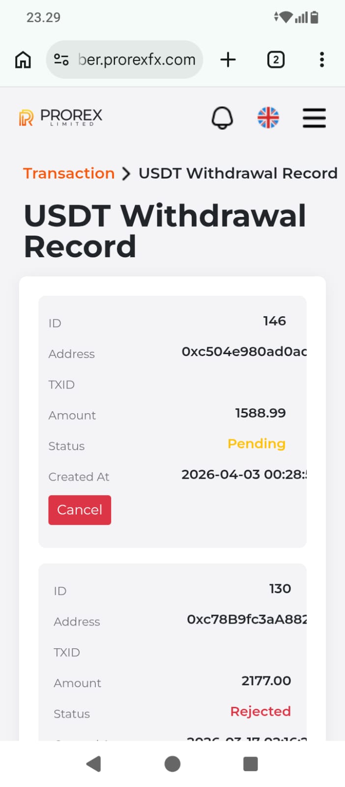 Acting in good faith and under the impression that I would recover at least a portion of my funds, I fulfilled my part of the agreement and removed all negative posts. As soon as the negative exposure was cleared from the public eye, Prorex Limited violated the agreement. They immediately ceased all communication, ignored my follow-up inquiries, and NEVER processed the promised payment of USD 1,588.99.