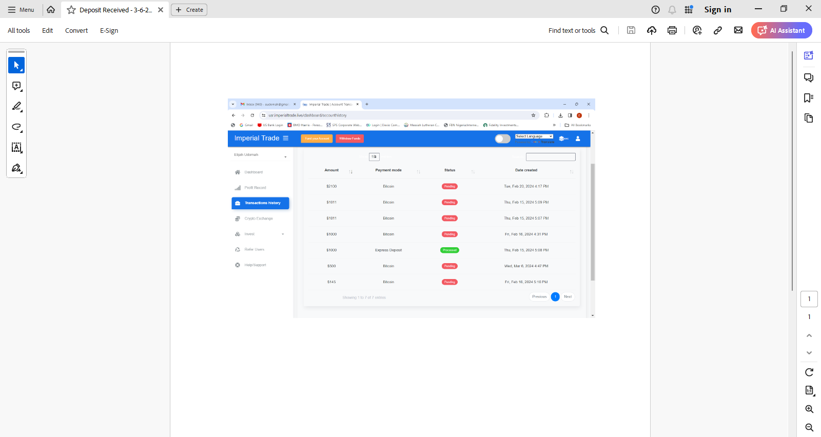 You may add proofs in your complaint :https://www.brokersview.com/complaint/fund-recovery-assistance-request-1337, we will try to urge broker to settle your issue.