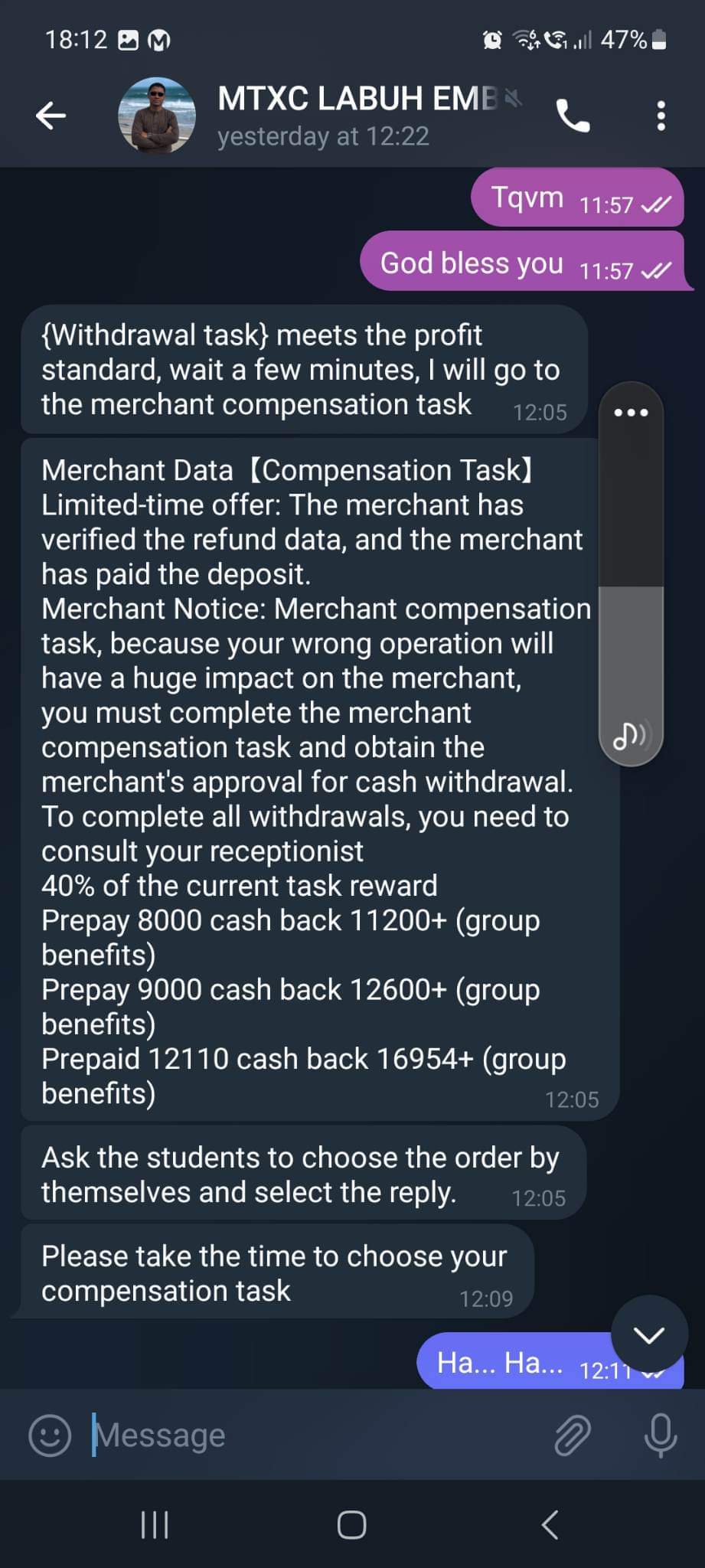 I have invested RM26k here, first they texted me using WhatsApp.Then they invited me to join Telegram group