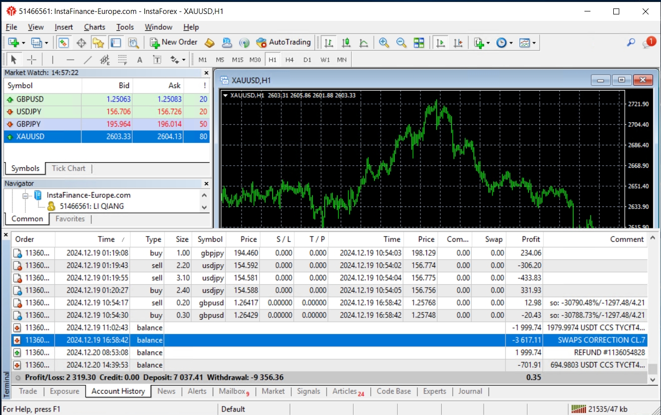 I opened a swap free account 51466561 at instaforex. After one month of trading, instaforex suddenly charged me a swaps correction of $3617 , resulting in a $1202 loss in my initial capital.
