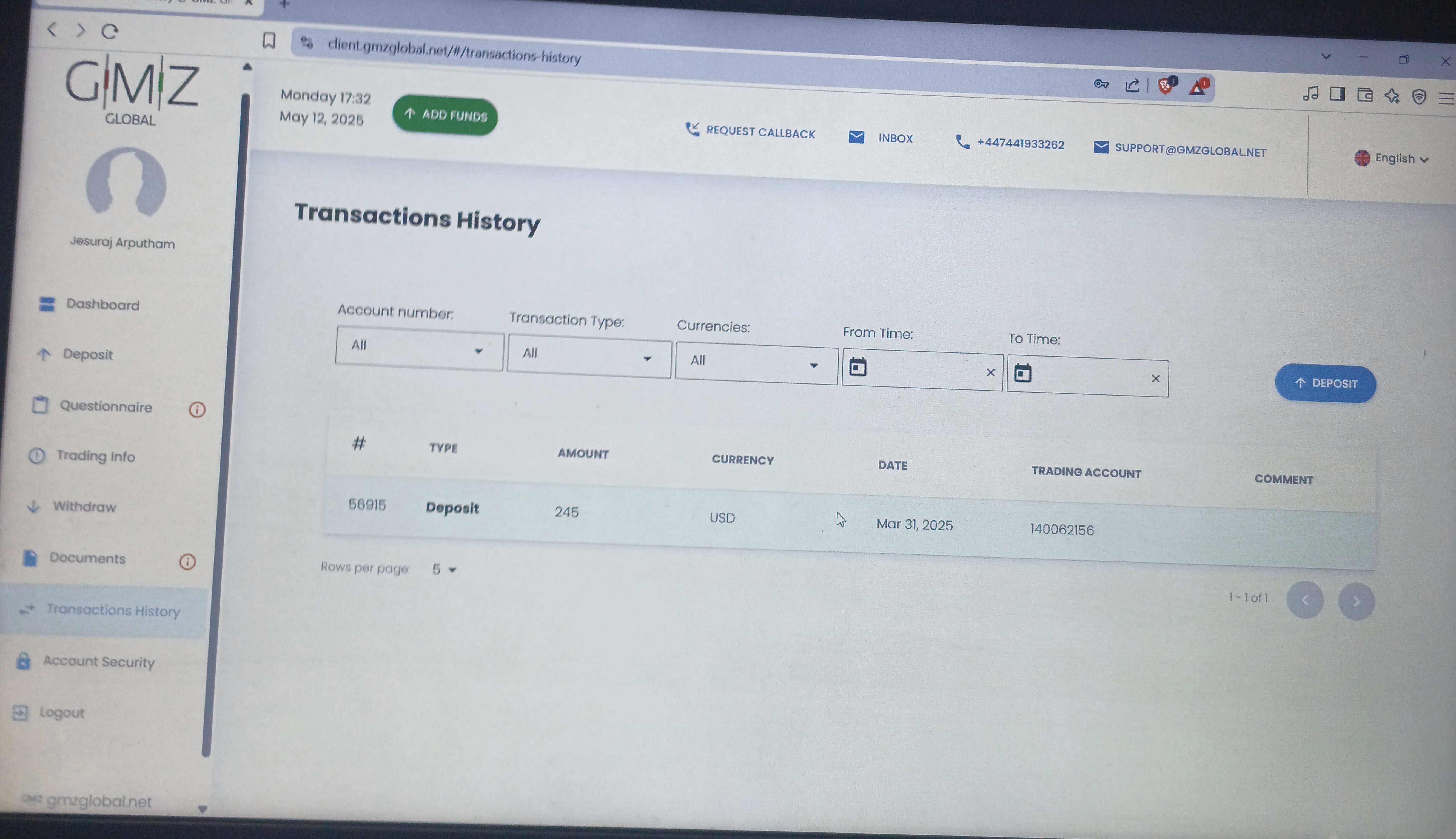 On 31 st March 2025 I deposited Rs 21000 in GMZglobalnet.com . They promised me once the money is deposited it multiplies within a day or weeks or months. The return will be more . Telling and advertising these with politicians,ministers,sports persons,google CEO and other well known personalities. All these are fake and after investing they go on telling invest more money in gold or other marketable commodities. When asked about 245 USD [that is Rs21000],the initial payment is enough for getting the returns they say this is only initial investment and need to pay lakhs of rupees for getting the returns. And they focus only from our side deposits and they are not ready to teach us the account security, ,withdrawal, KYC documents uploading and other essential process. They call me and ask for more deposits .That is not possible from my side. At the end I understood it is a fake and fraudulent company. Therefore please help me to recover the amount of Rs21000 paid by me in this company. Please help me. Thank you.