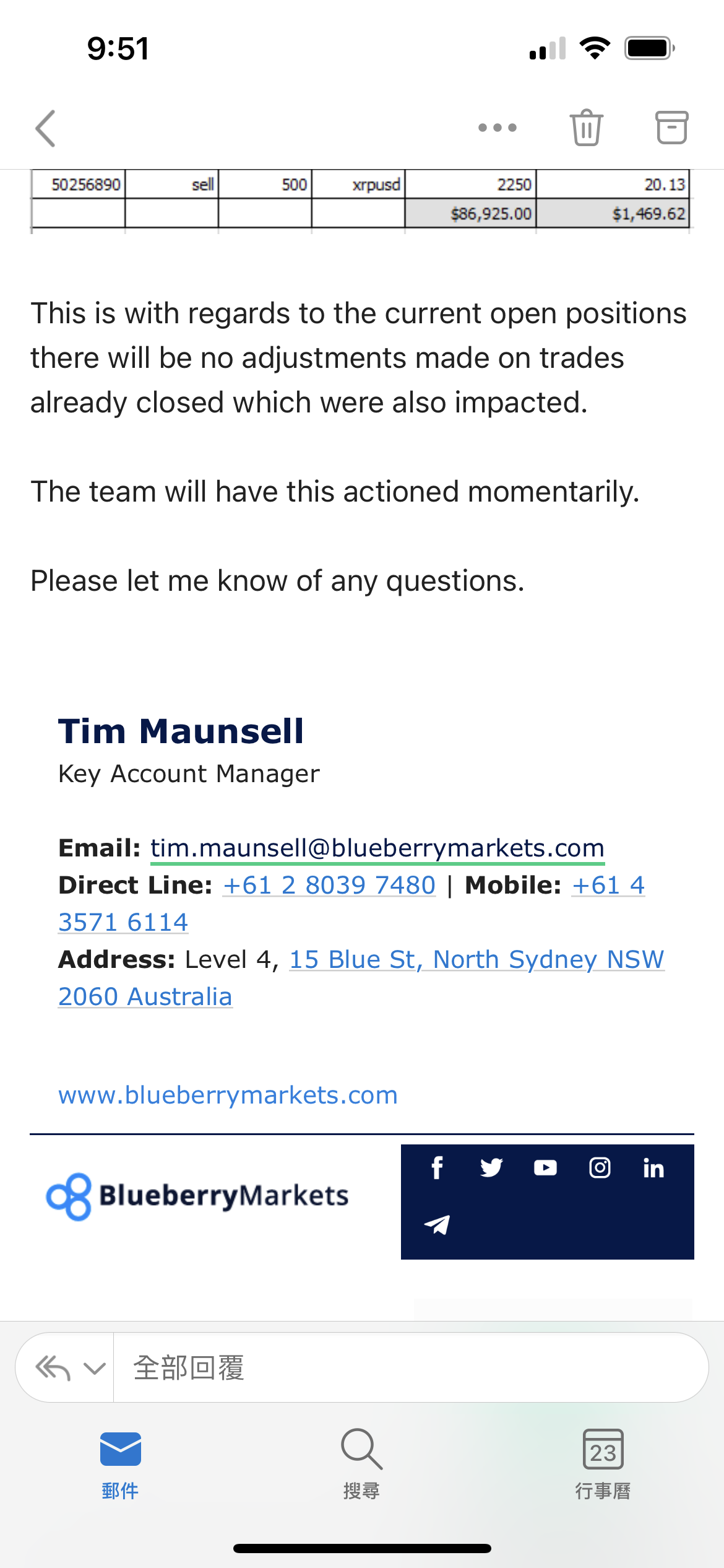 I just follow the daily and monthly statements, all black, and white. I do not know how your calculation of the swap rate. It shows my account with 137,000 USD yesterday but now only USD 57,000 after deducting the money from blueberry markets.