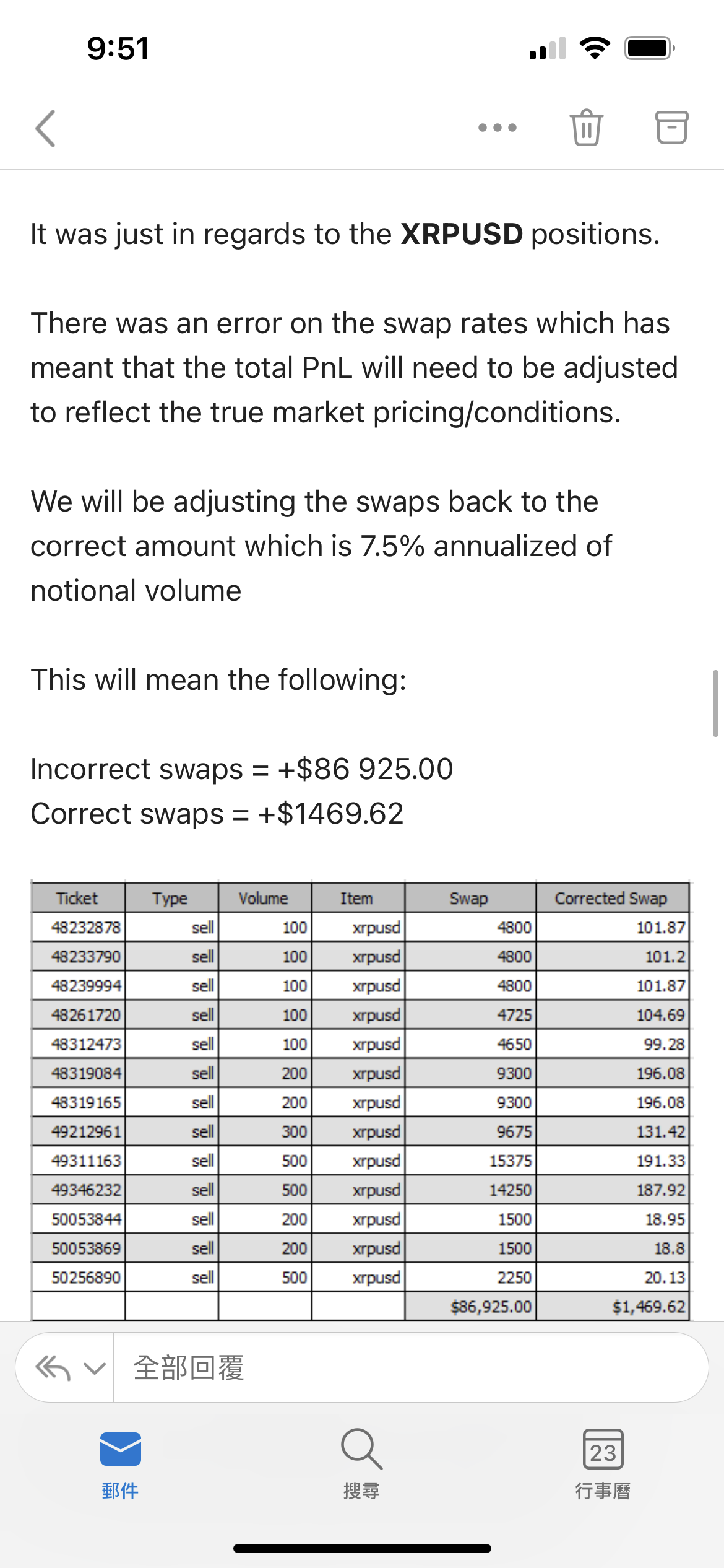Today I suddenly get an email to be informed wrong calculation of the swap. They deduct my account USD 85000.