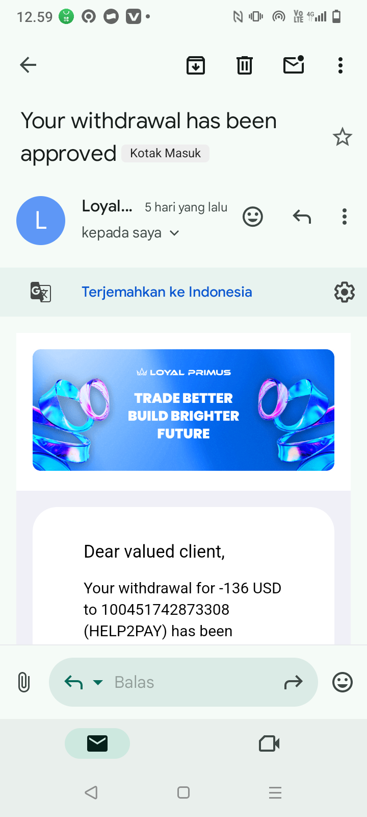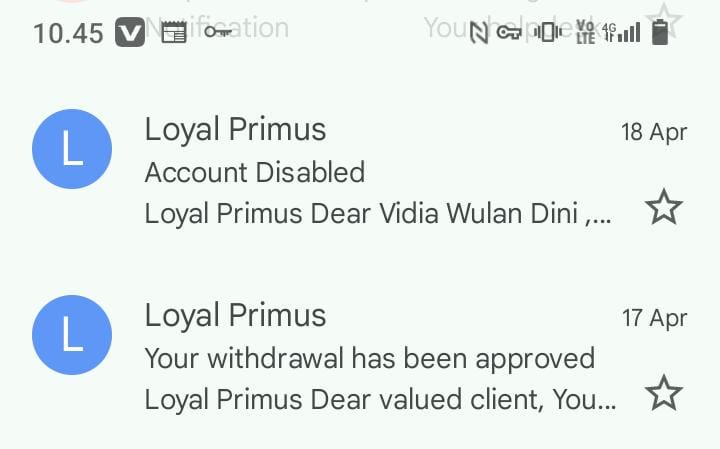 A day after withdrawing funds and funds have not entered the account but Loyal Primus fully blocked my account by saying I violated the rules, but I withdrew my money to the bank account in the name of the account and there can be no mistake if we withdraw money to the bank account with the same account name.