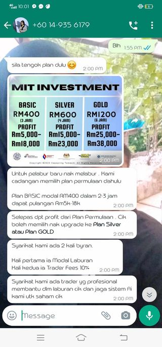 I met this scammer on a whatsapp chat group and I made a huge mistake. They lie and pretended to offer me a great investment scheme but I did not get any penny. What a joke. I shouldn't expect to earn such fortune in one day. I have read your articles about Malaysia Islamic Trading and now I know they are criminals.