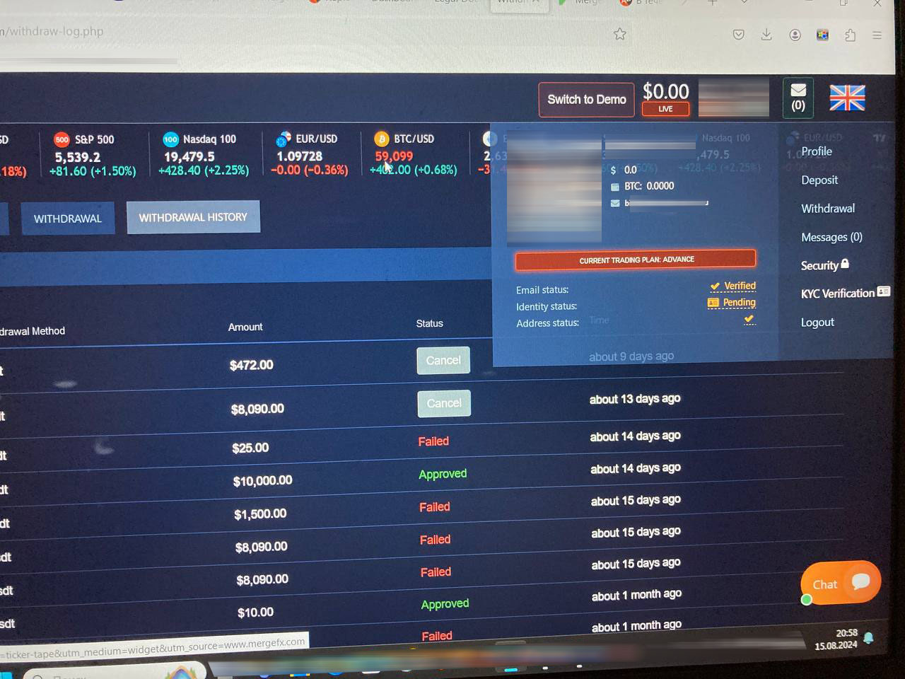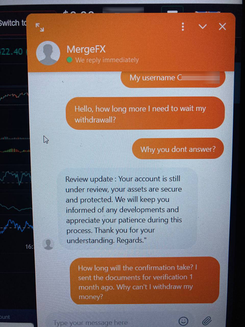 We have received your complaint and have conveyed to MergeFX. But you must know that the mechanics of MergeFX (mergefx.com) is a scam. It is strongly suggested that you report the case to the local police ASAP. Enforcements are authorized to recover ill-gotten from criminals.