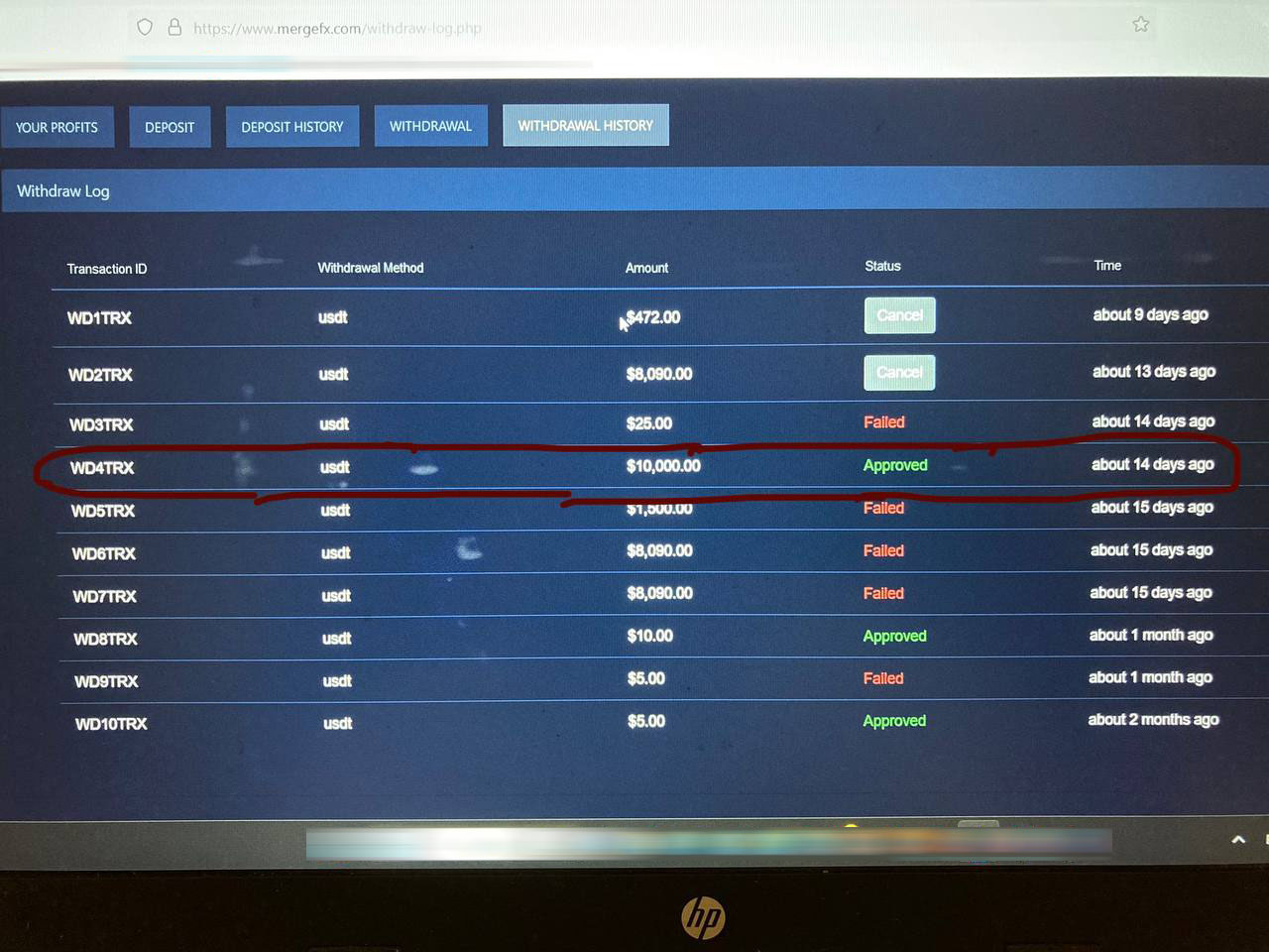 These are photos of my personal account, the history of correspondence, withdrawal (?) of funds and deposit. In photo number 9, I allocated the withdrawal amount, but this is actually not the case, I transferred this money ($10,000) to my friend inside the site, which he sent me before so that I could trade with a larger amount. In fact, I was only able to withdraw the trial 10 and 5$. And I made a deposit of $1839 and $3345.