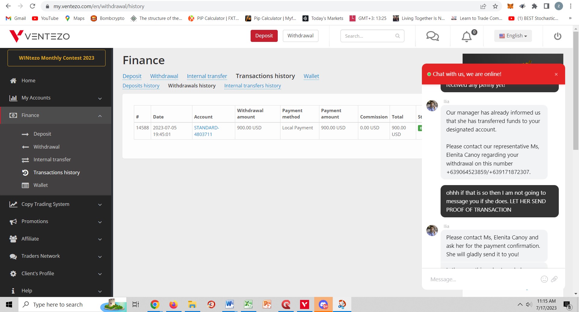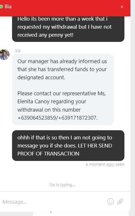 2. Chat Support Claims:Ventezo's chat support has confirmed that the Country Manager in the Philippines has already transferred the funds.Yet, no funds have been received in our bank accounts, creating a discrepancy between their system's updates and the actual transfer status.