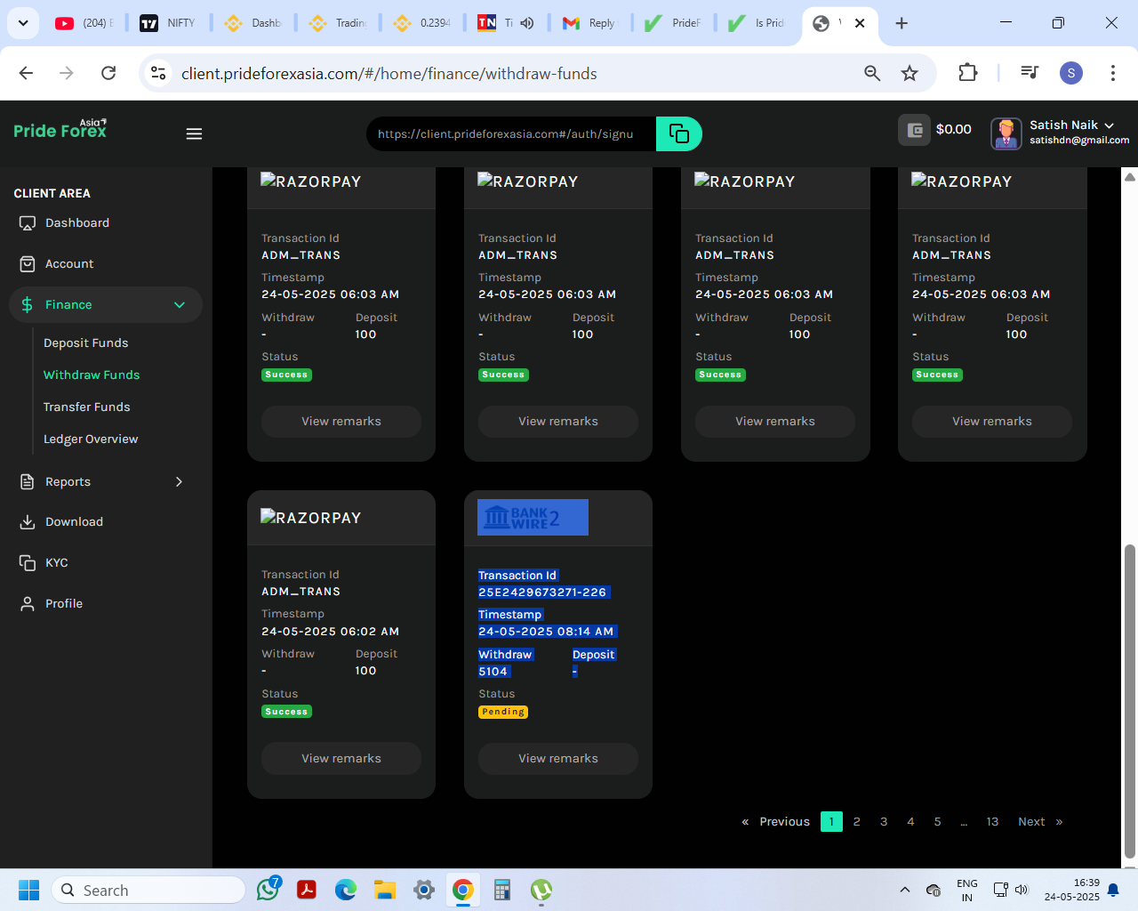 Now the total amount with them, including profit is $ 5104. from yesterday, I am trying to withdraw, but the status is showing as pending, I will send you the screen shot, for your reference.
