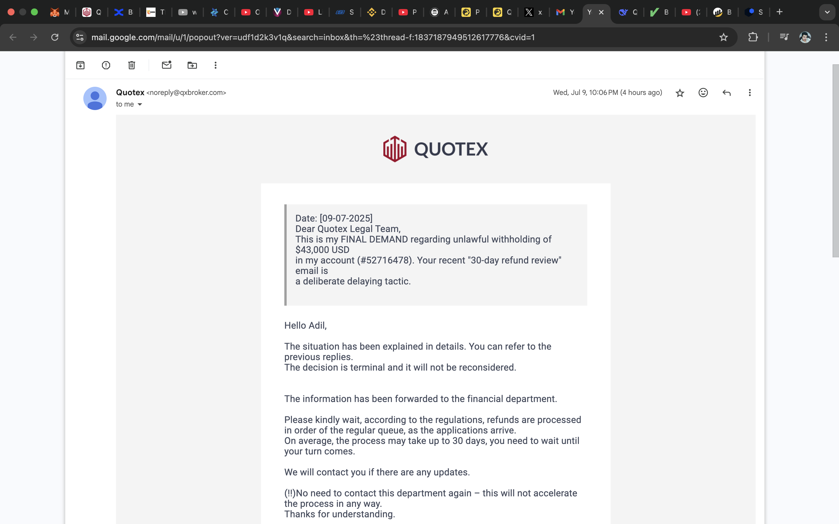 3. **QUOTEX'S FRAUD RESPONSE**: