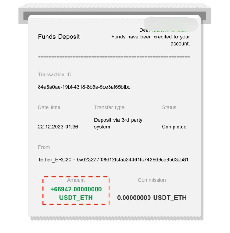It was then explained that the remaining amount (69,011USD) was withdrawn on 12/22. However, the amount received is 66942USD.