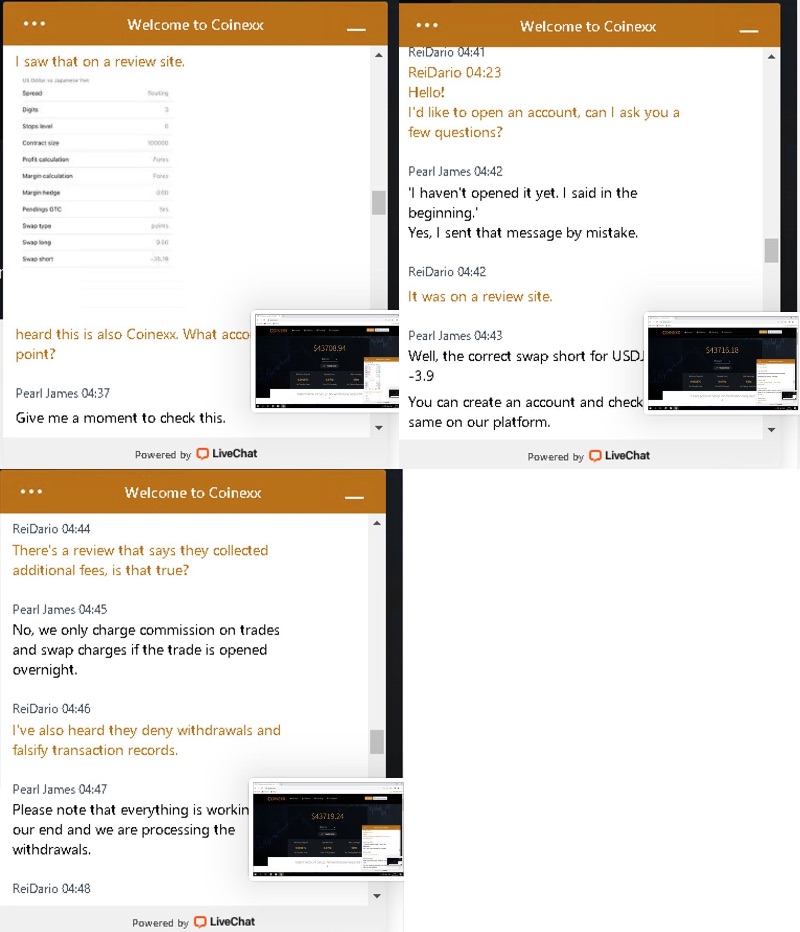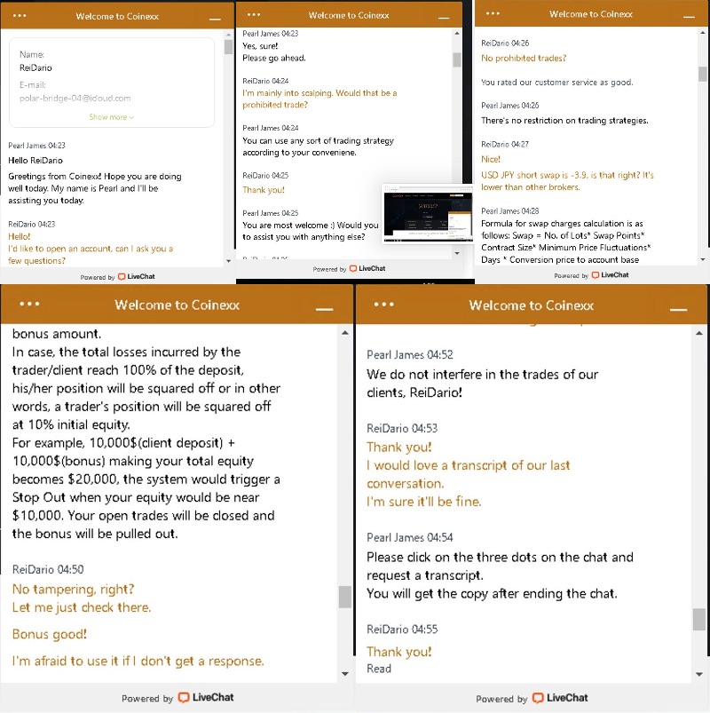 We have received testimony from chat agents that there are no restrictions on their use of COINEXX and that they do not interfere with their clients' transaction records.