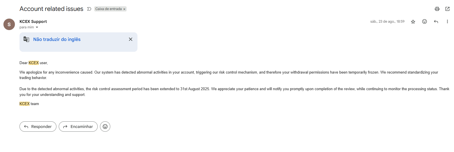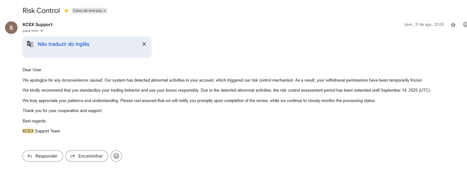On August 20 I made legit profits trading futures. On August 21 KCEX suddenly froze my account for a so-called risk control review. They asked me to send ID photos and even a handwritten note, which I provided immediately.