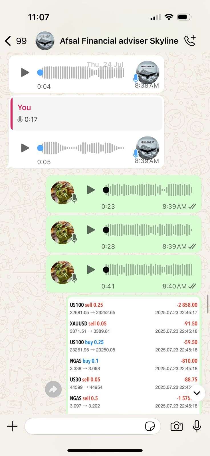 From June 3 until July 1, I received persistent calls and messages from Afsal and Rizwan, despite expressing my disinterest. They convinced me to invest, claiming success in Skyline Trading. I initially paid $1,000 and was assigned a Relationship Manager, Ahmed Zyadh, who promised a 100% guarantee on my investments. After I deposited a larger sum, all my trades incurred losses, and he requested an additional recovery payment of $3,900, which I paid before he stopped responding.