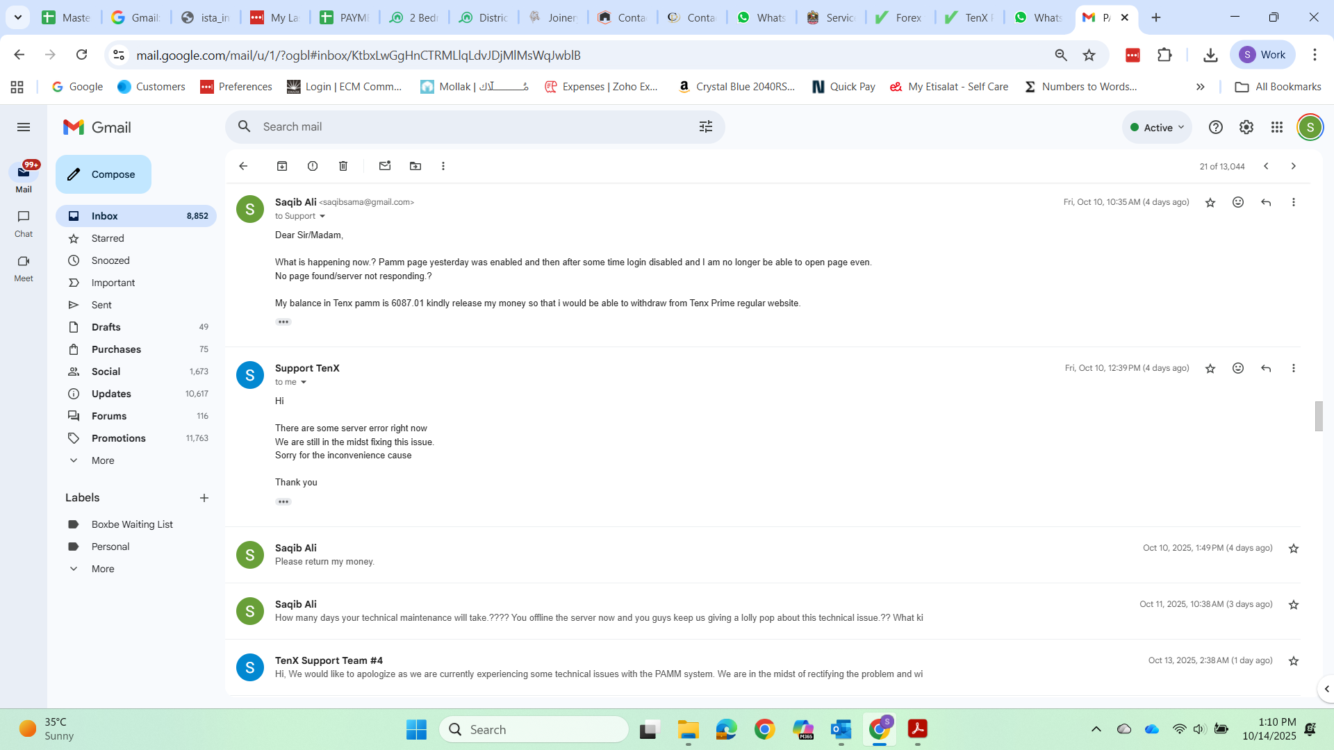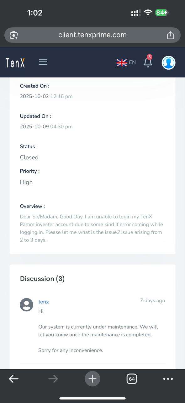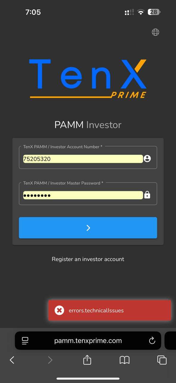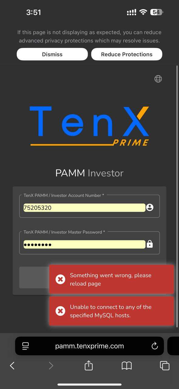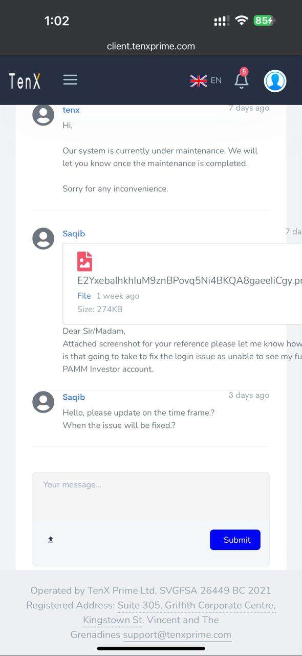 My Conversation with broker visa support email attached, PAMM page Error attached, my Current balance in Tenx prime PAMM screenshot attached