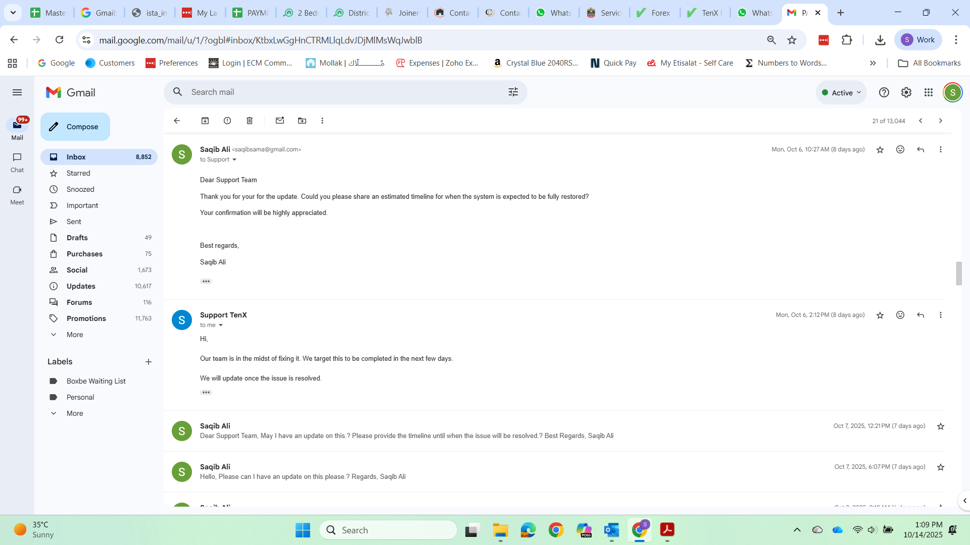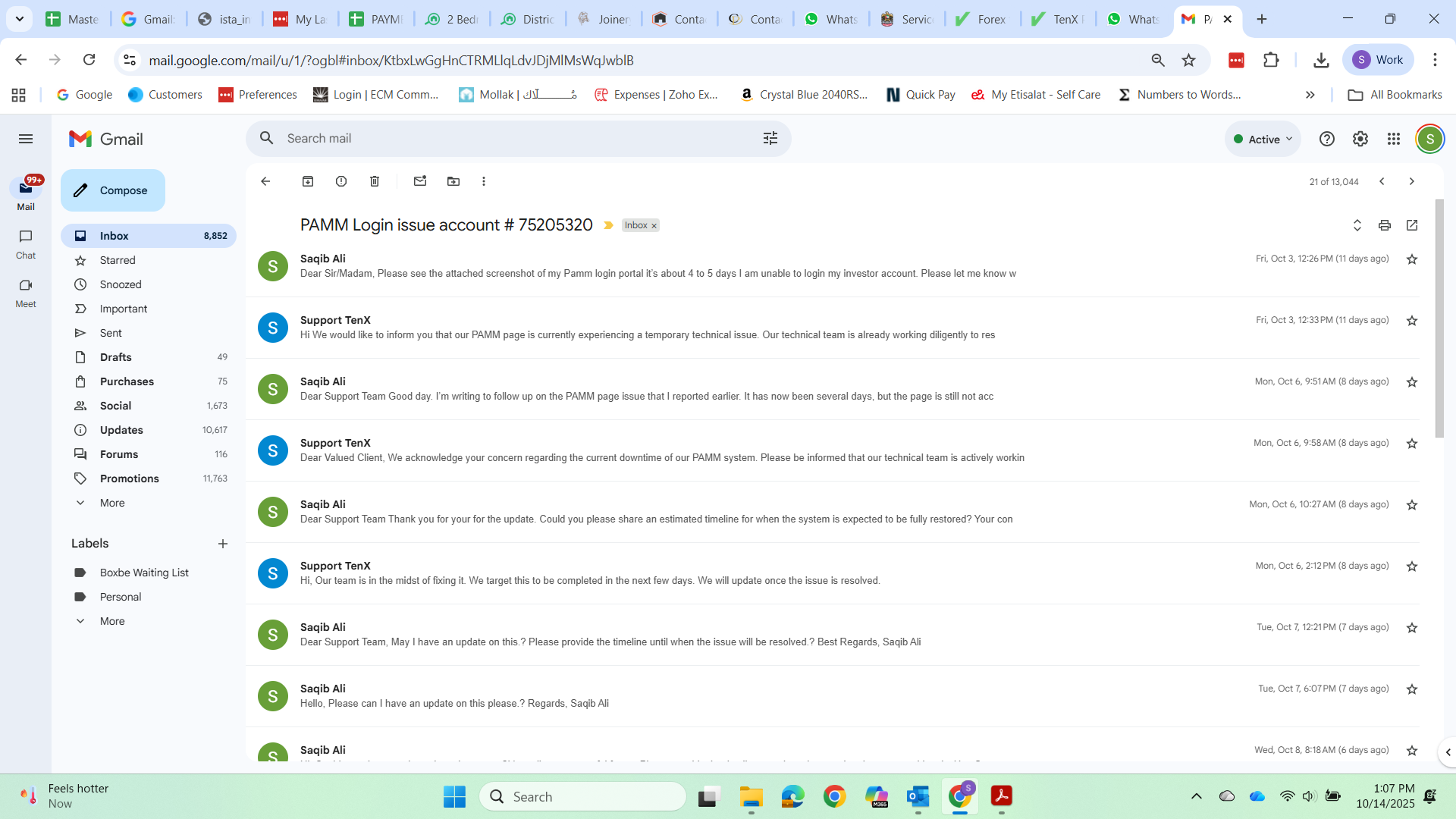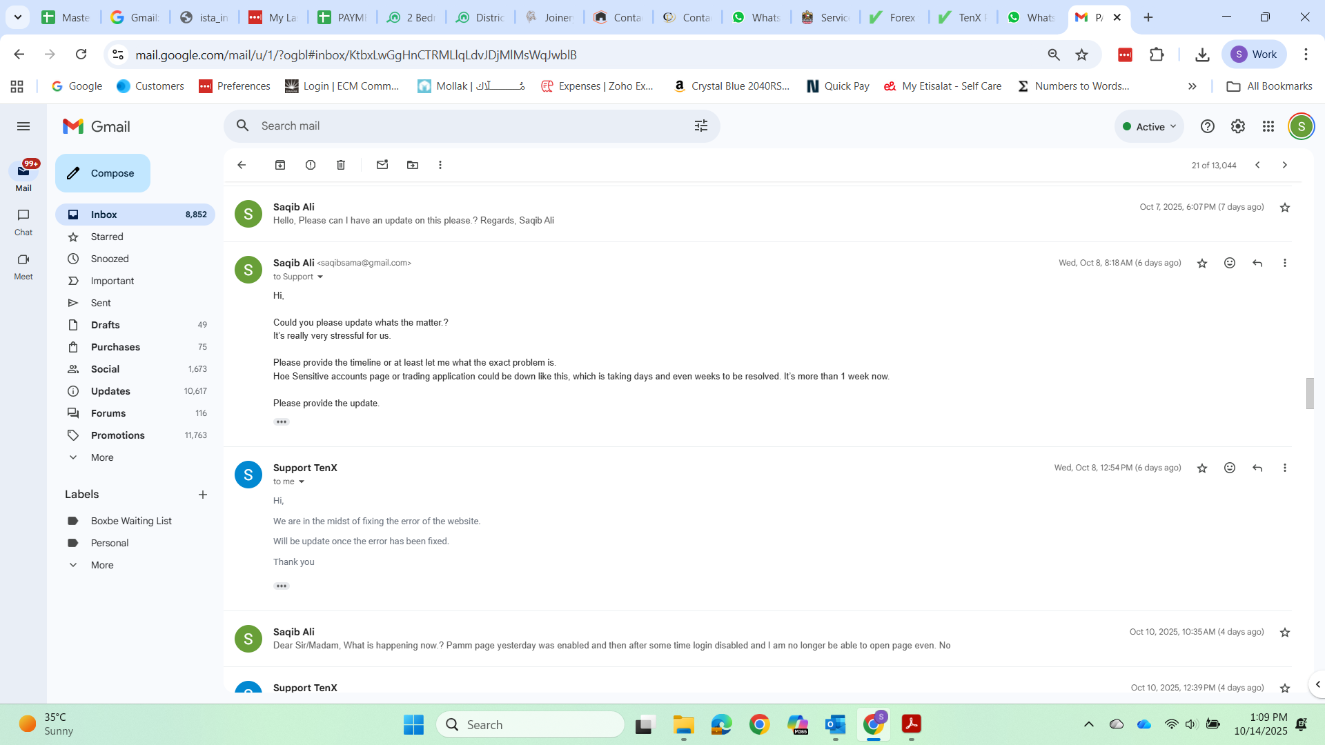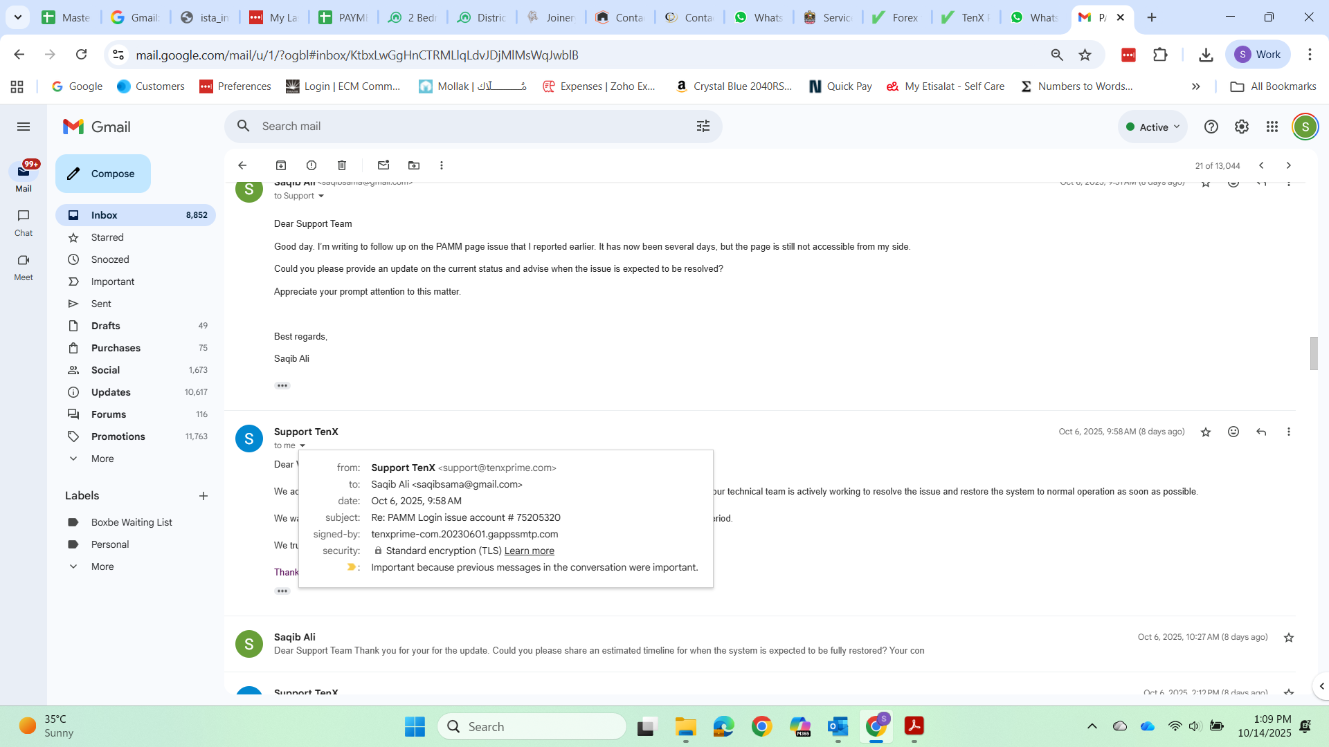 My Conversation with broker visa support email attached, PAMM page Error attached, my Current balance in Tenx prime PAMM screenshot attached